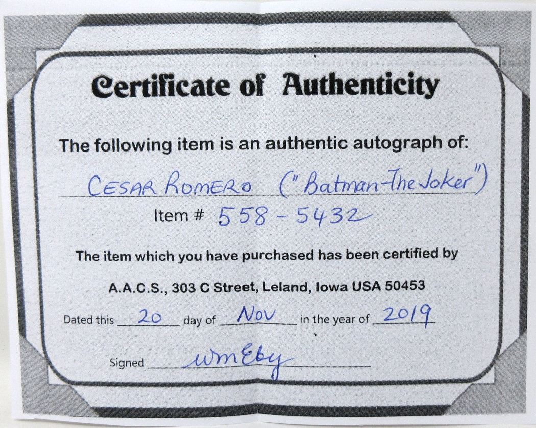 Batman "The Joker". 4" x 6" Batman cast photo and autographed Hollywood card. Includes a certificate of authenticity. 8" x 10" acid free matt.