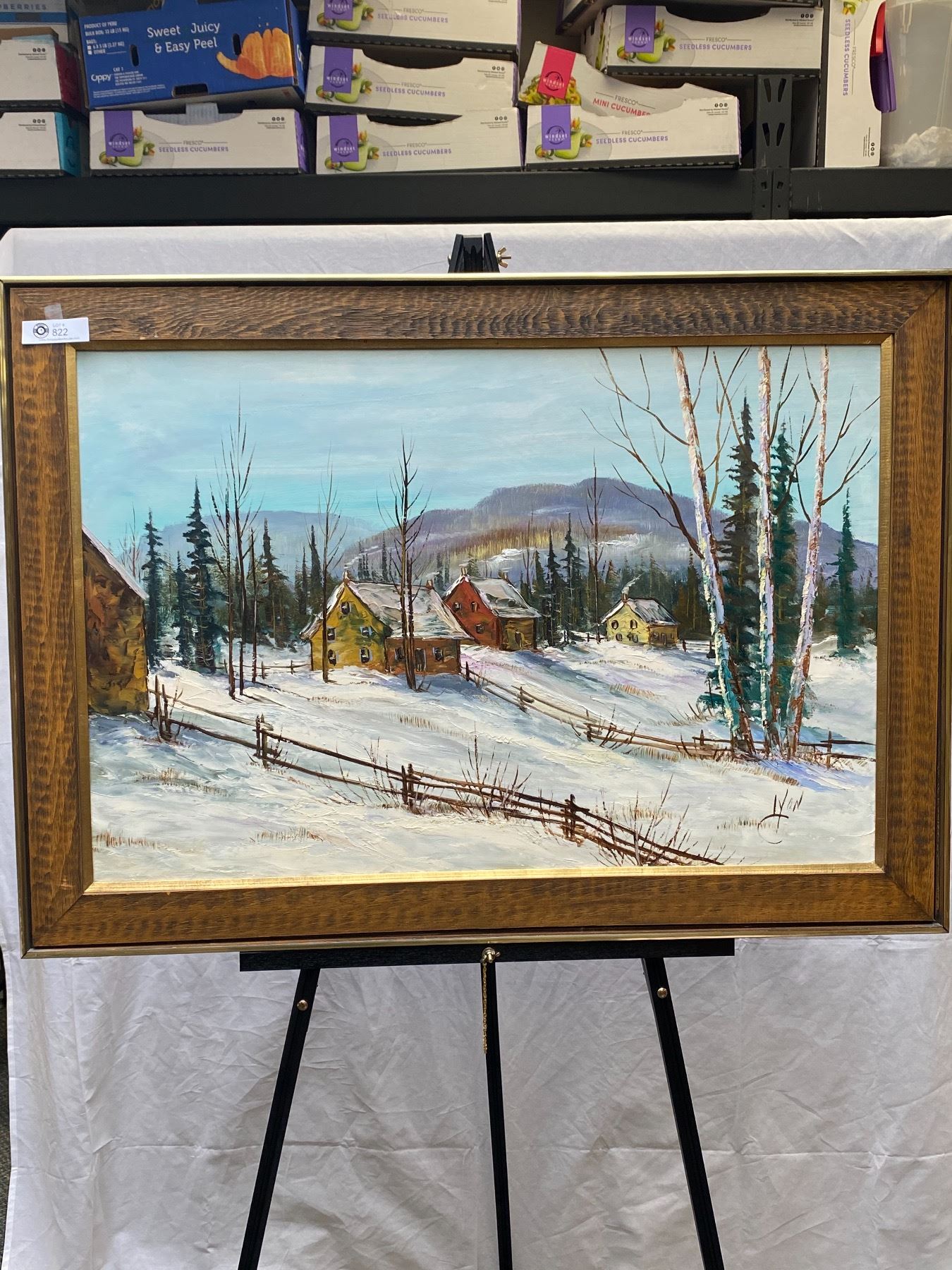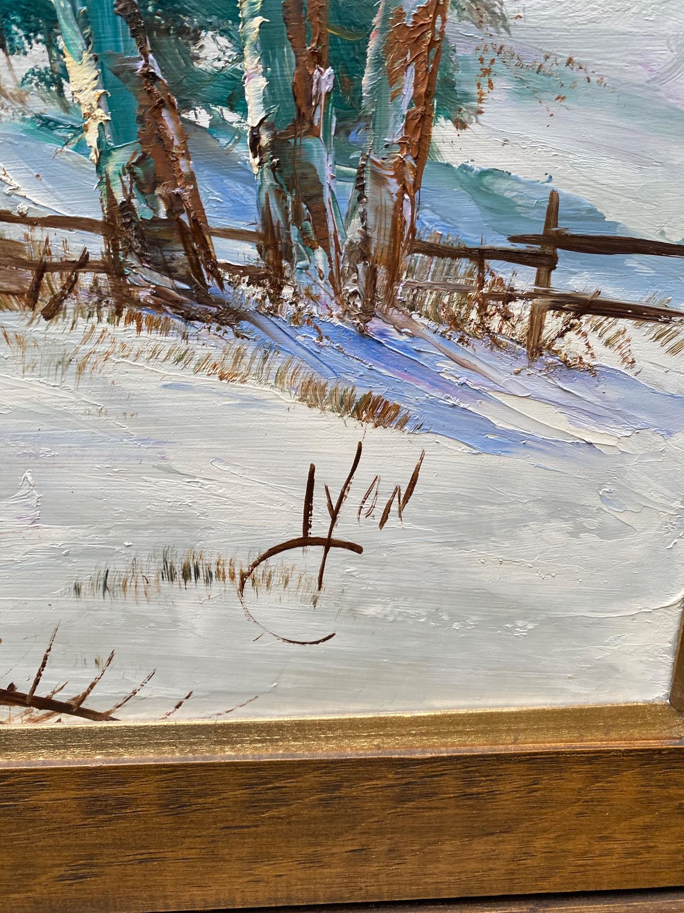 Signed Painting Winter Country Scene 42"x30" Pakmail or Pickup