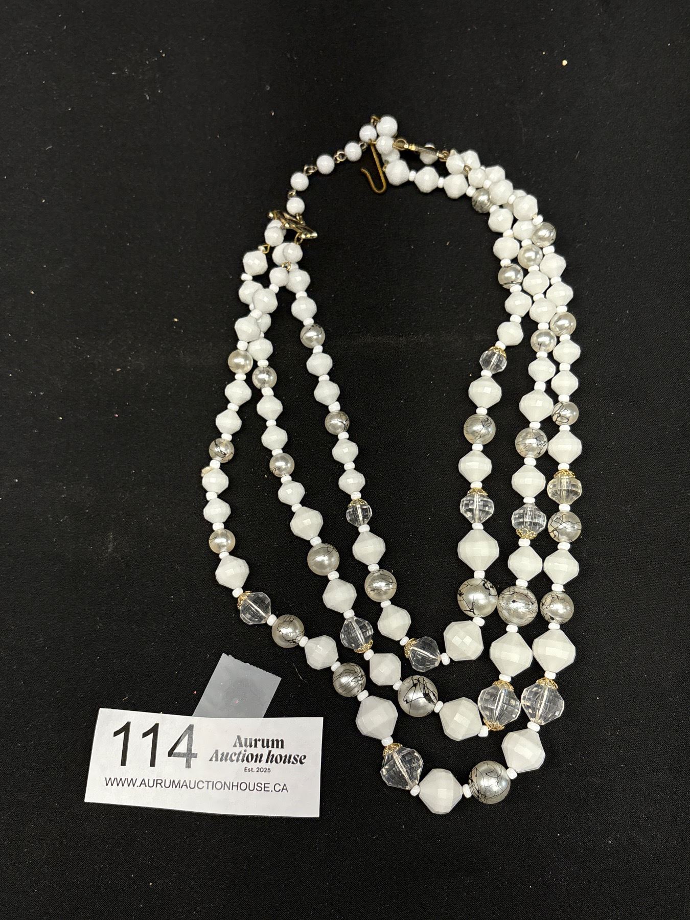 Signed "W. Germany" Triple Strand Beads Necklace Great