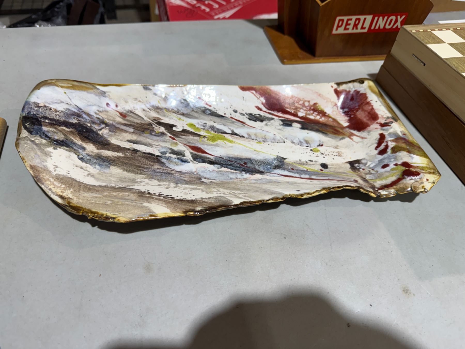 Signed, art, pottery, abstract tray