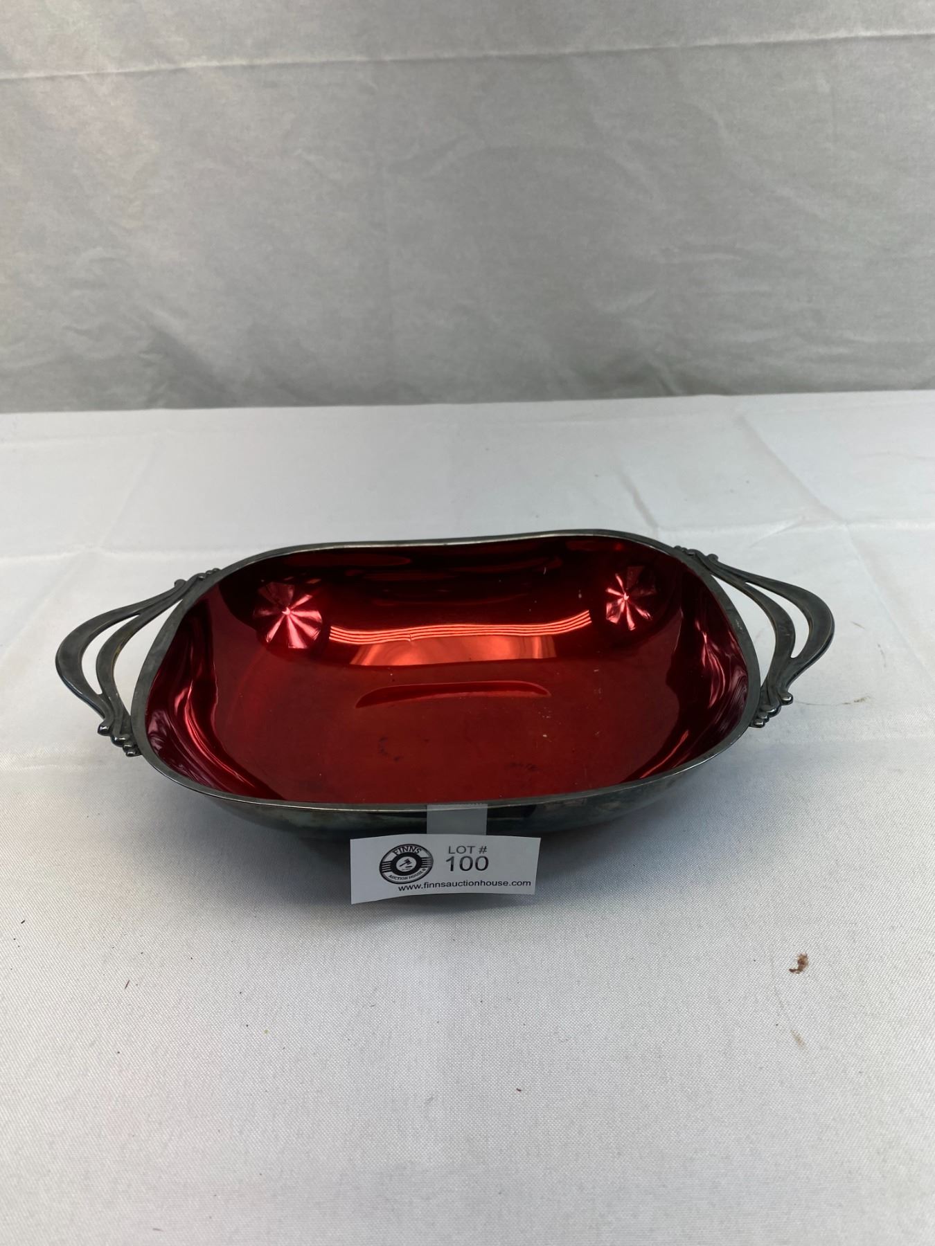 Silver Plate Denmark Red Enamel Bowl