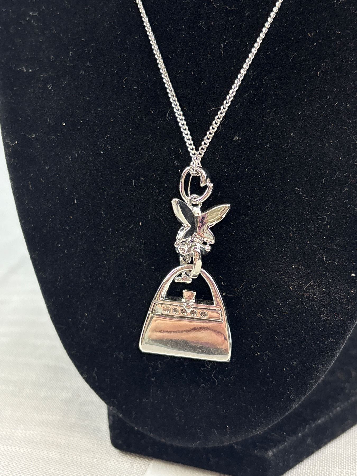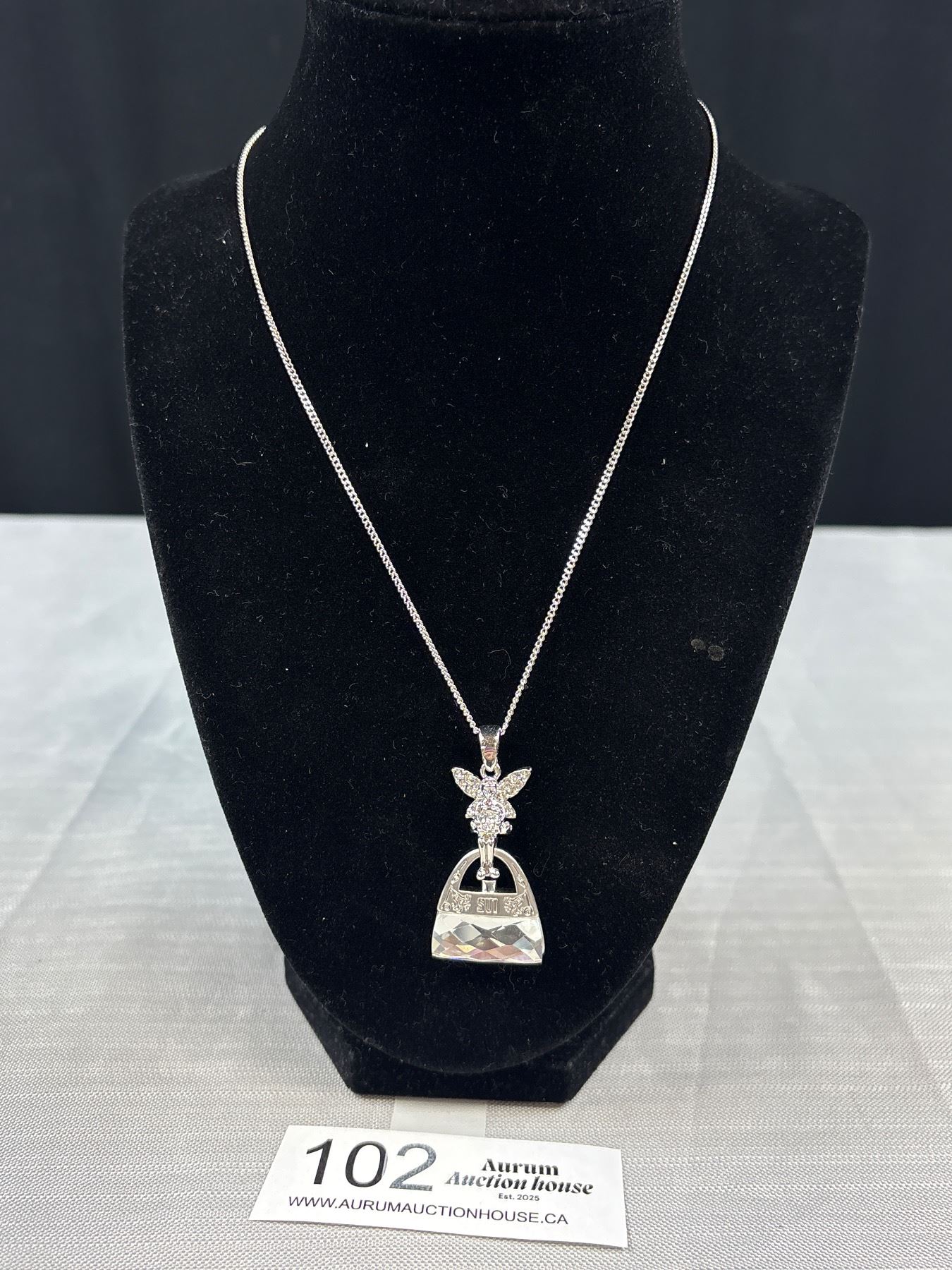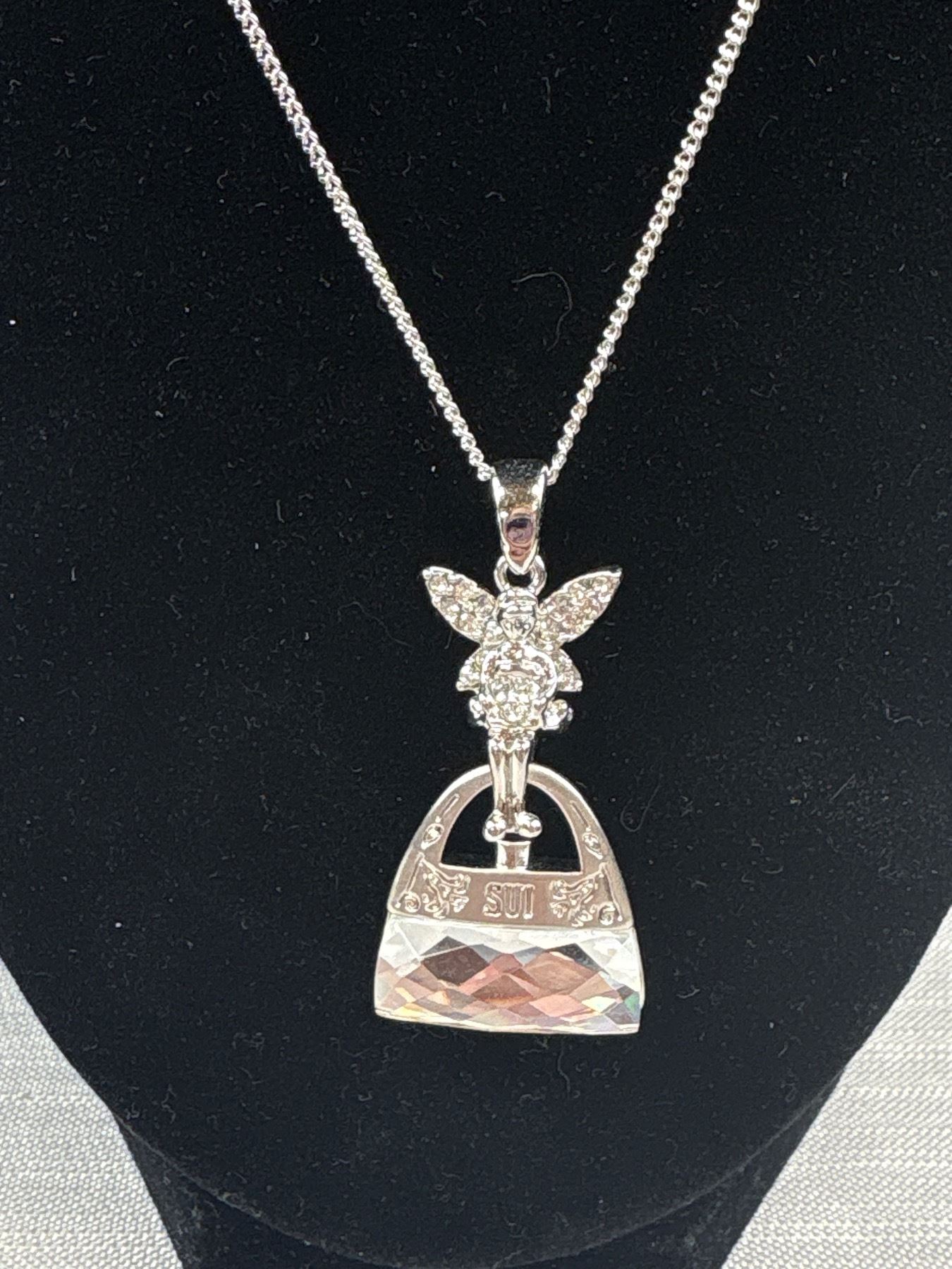 Silver Plated Crystal Stone Pendant Necklace, Marked Sui
