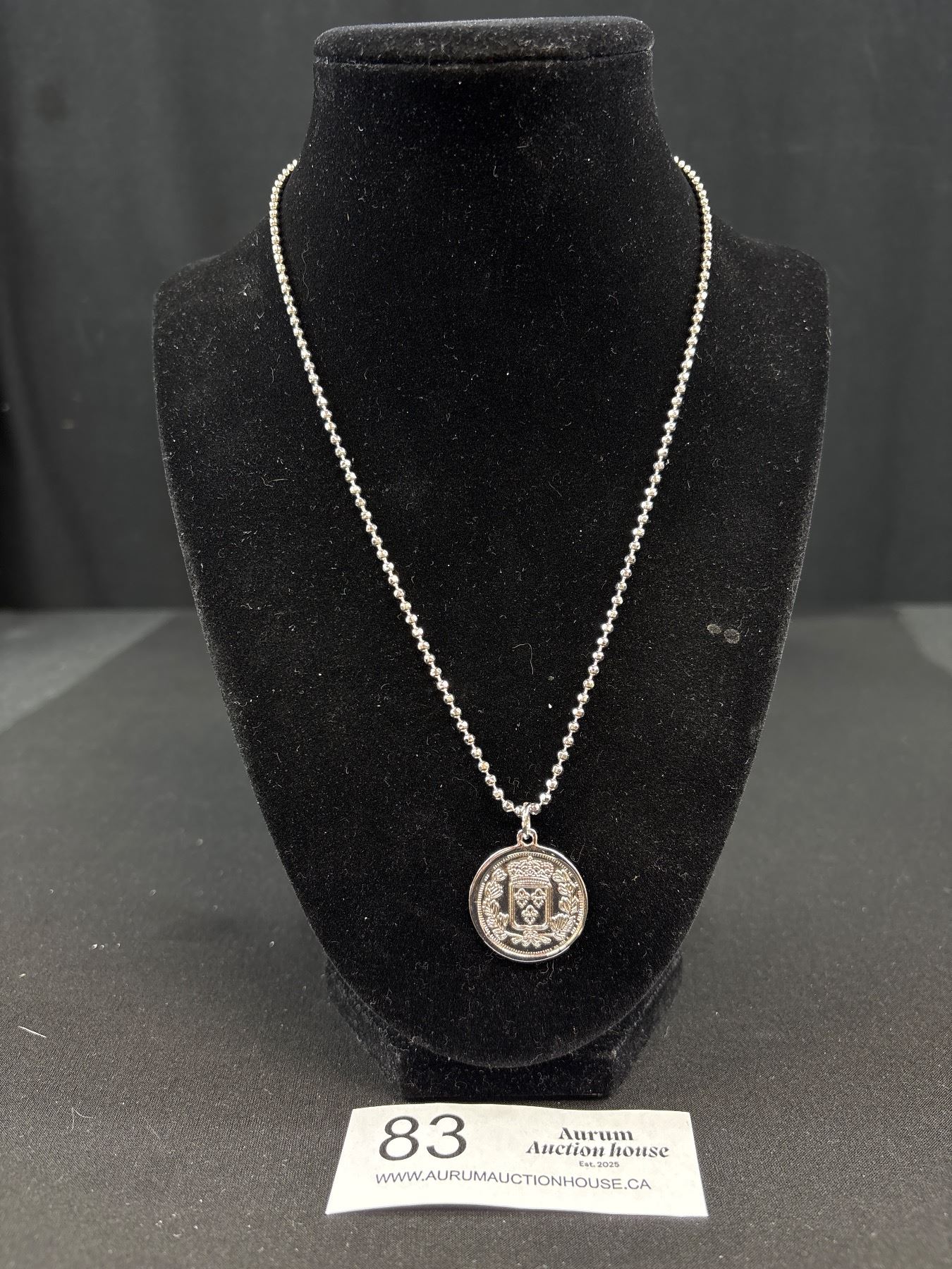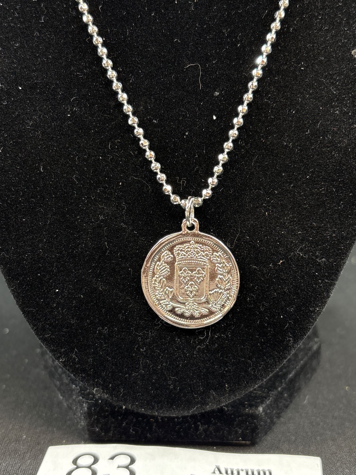 Silver Plated Republique Francaise Coin Pendant w/ Chain Necklace