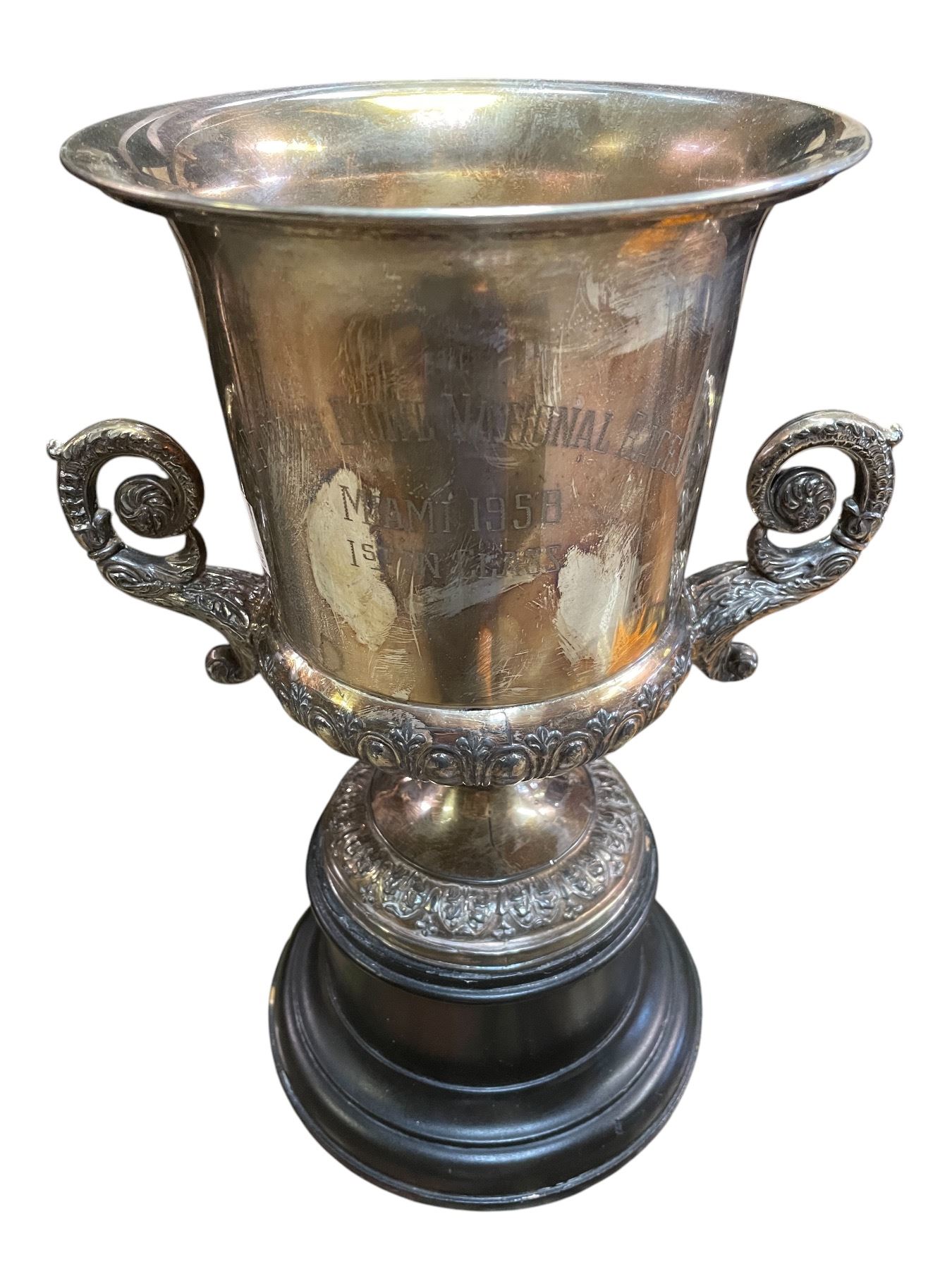 12.5 " base and cup height. 6.75" diameter cup. Cup hieght without base 9"