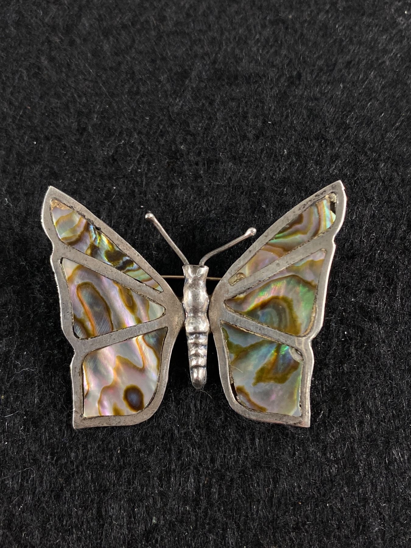 Silver Tested & Marked Abalone nlaid Large Butterfly Made in Mexico