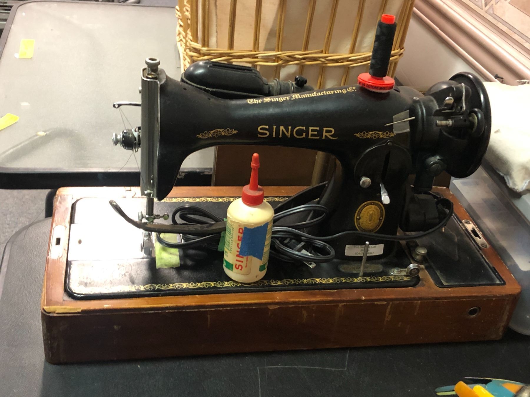 Singer - Vintage sewing machine model UC94211 w/ accessories & wooden sewing machine table - clean up auction moving auction