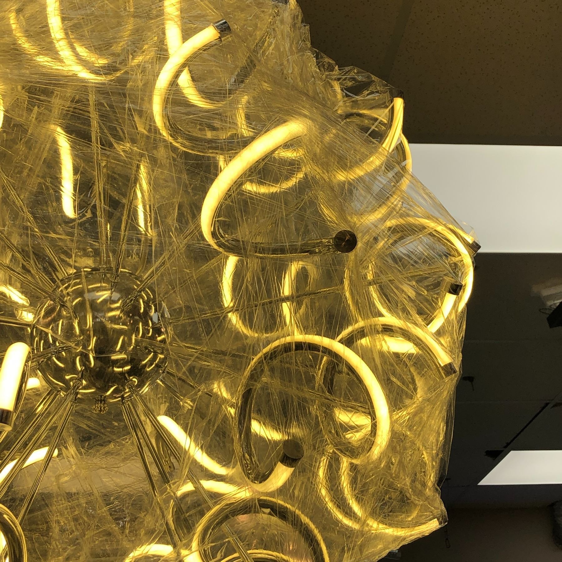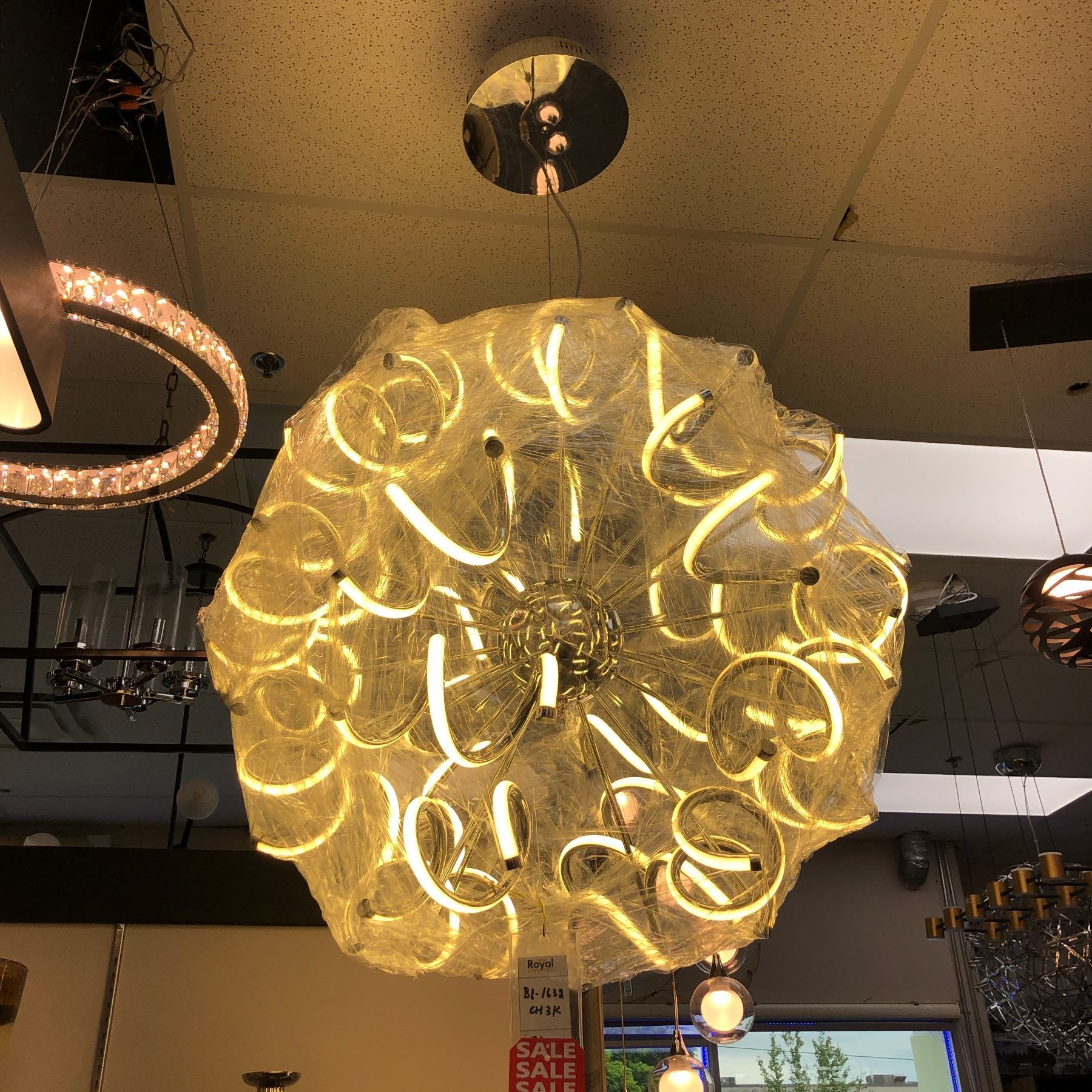 Single contemporary decorative chandelier (already wrapped for shipping) - bidder responsible for ceiling removal