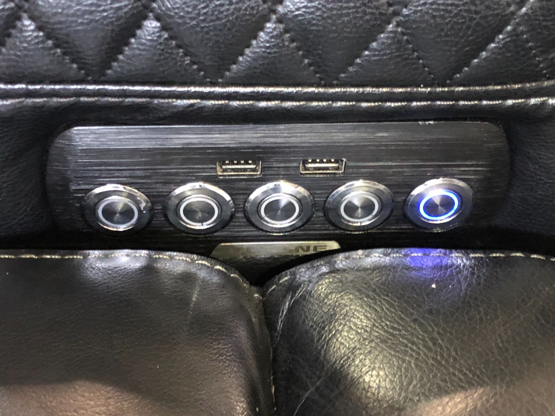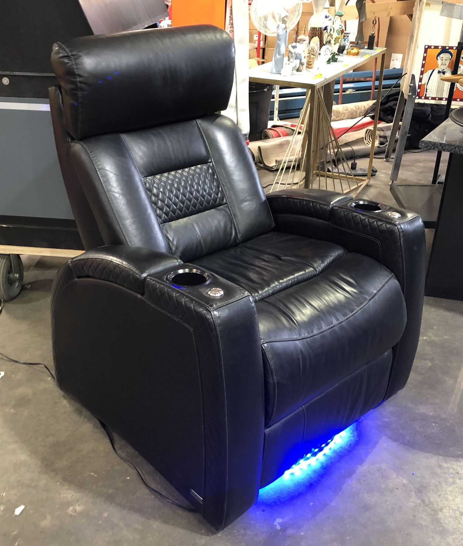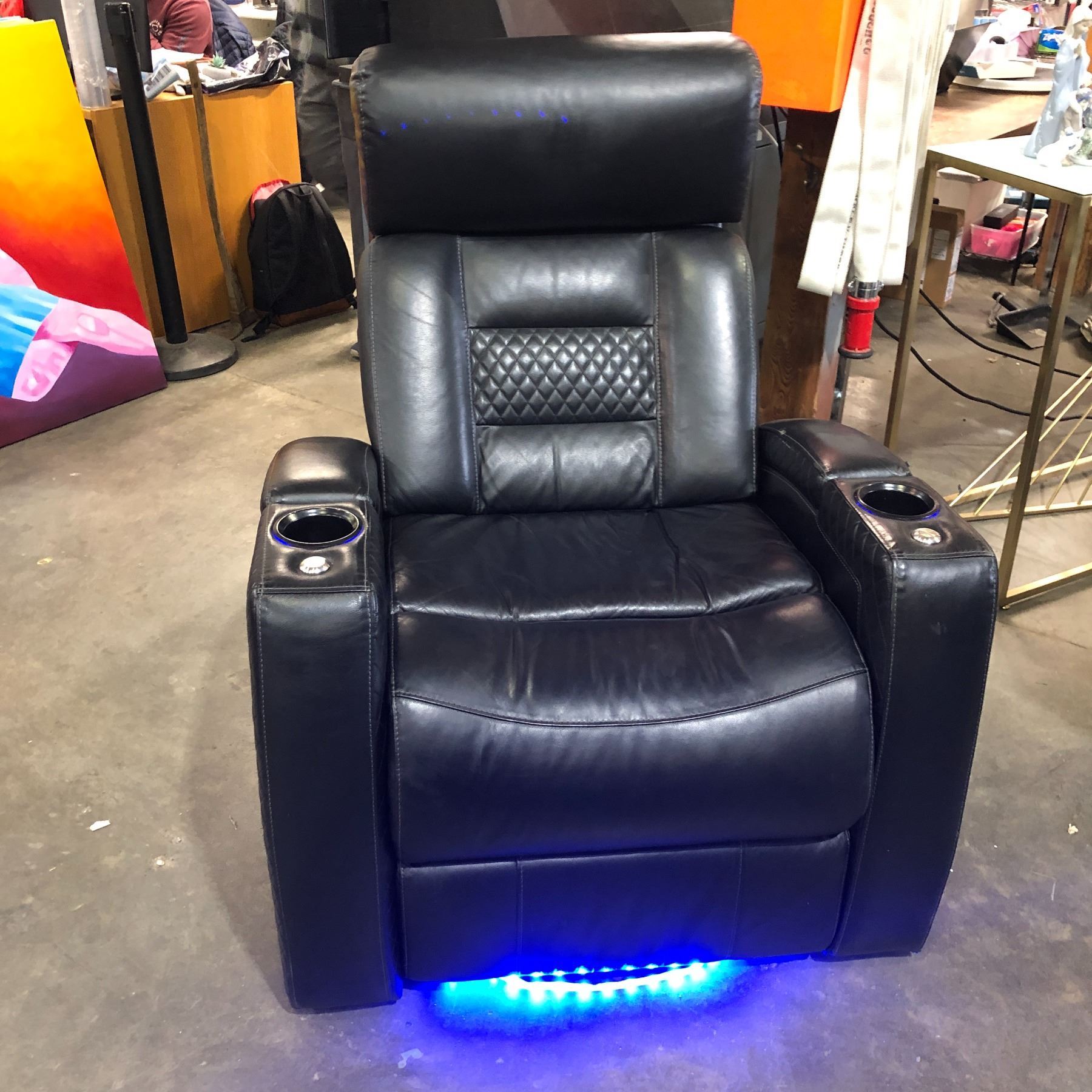 Single fully functional home theatre seats, enhanced with stylish blue under lighting for an immersive cinematic experience. (Approx. 35in L)