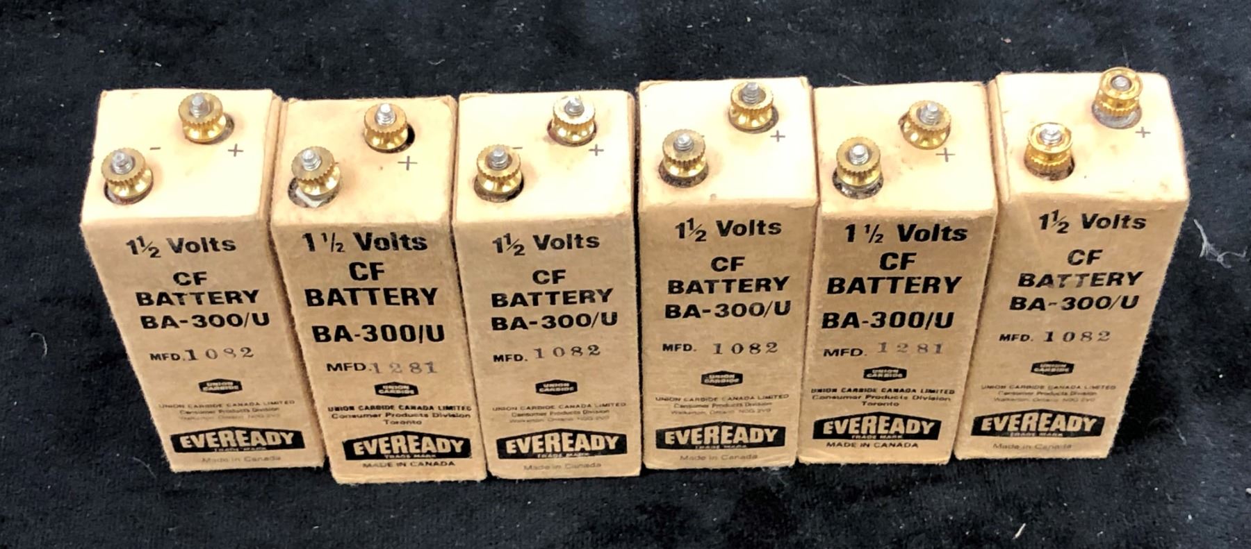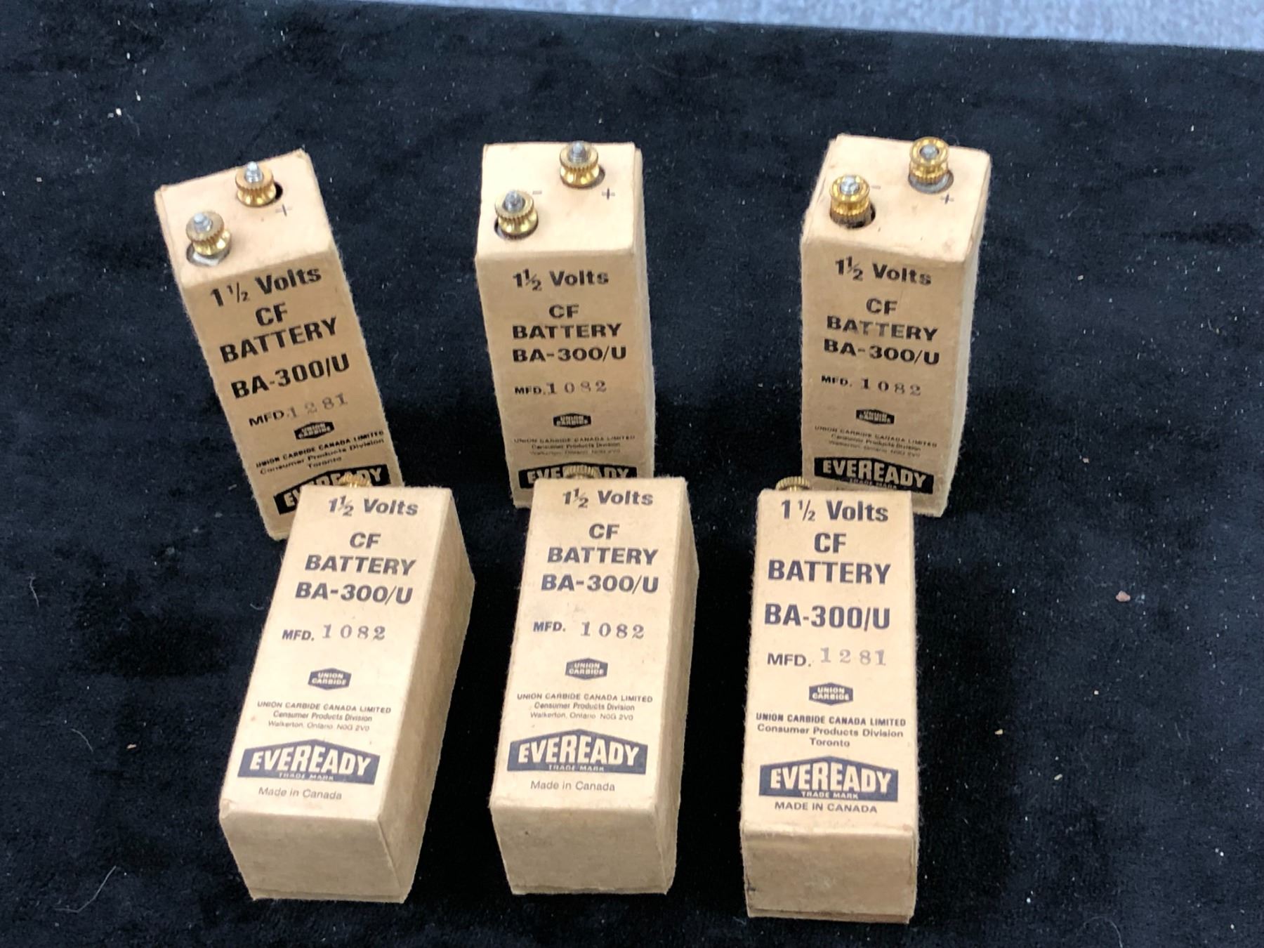 Six Vintage Eveready batteries for telephones & remote radio equipment - good for display (dead batteries)