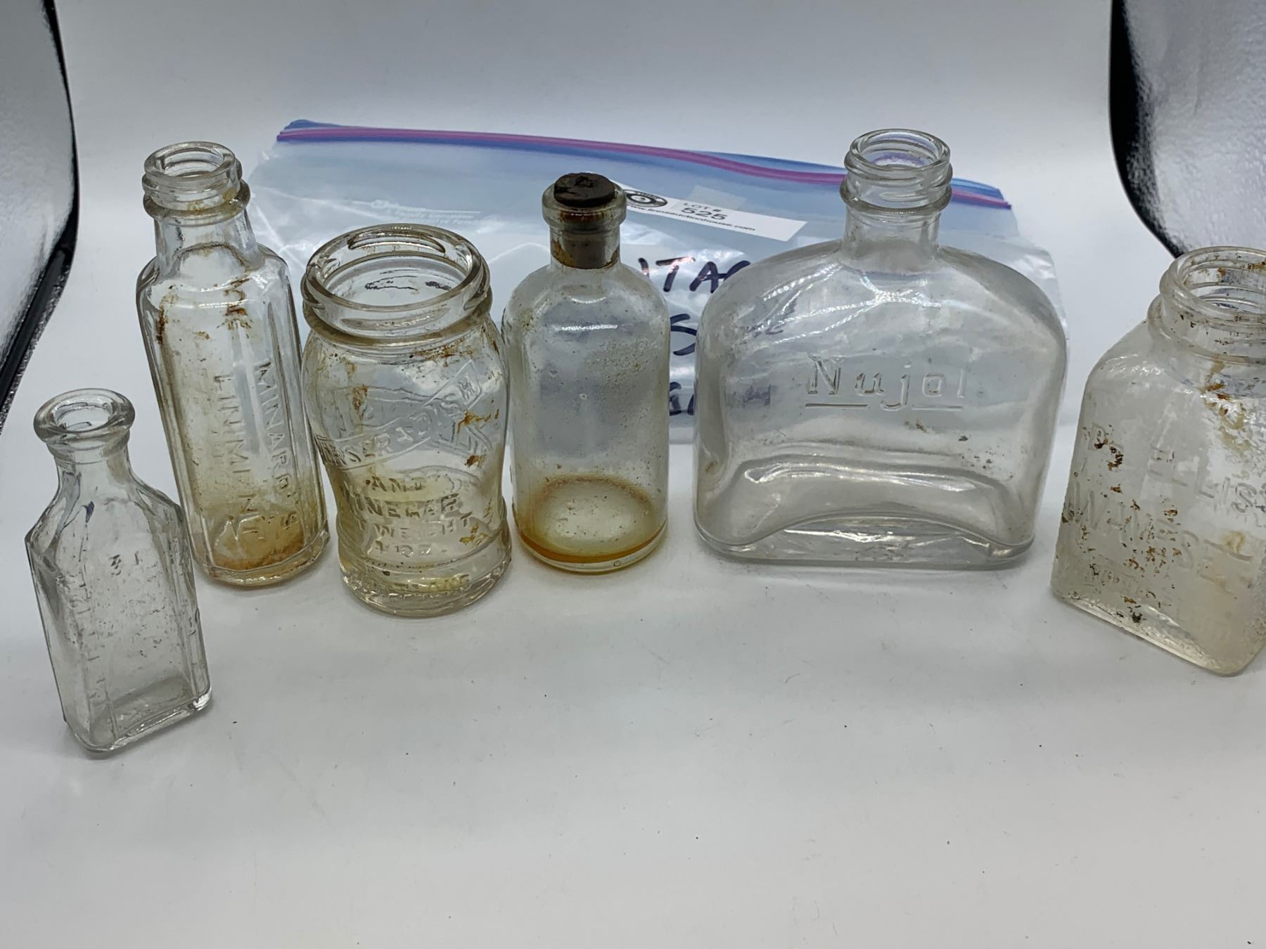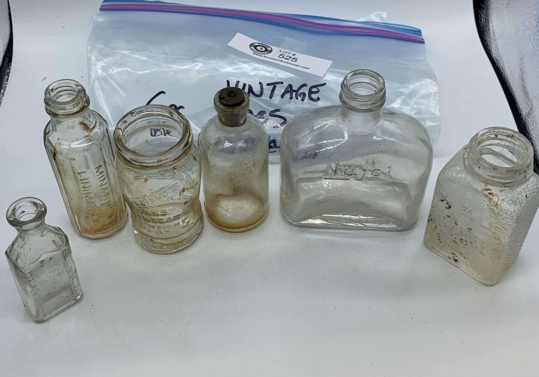 Six vintage glass apotheary bottles