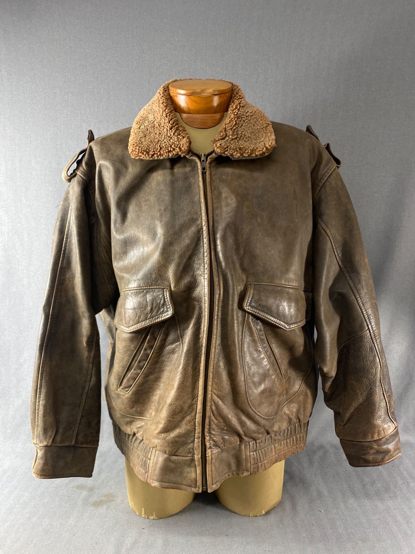 Size 44 Fur Town Ltd Vintage Leather Bomber Jacket