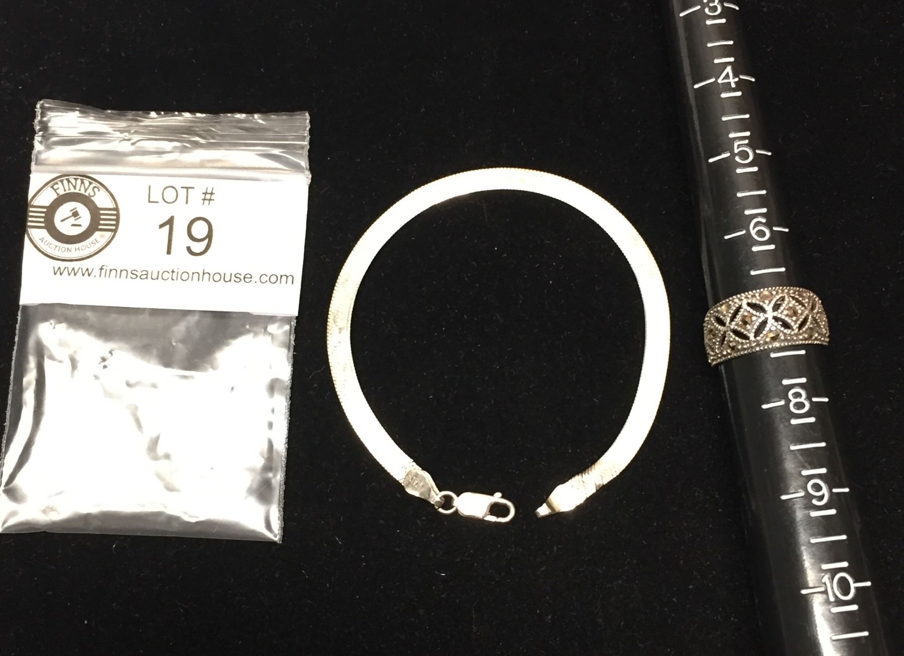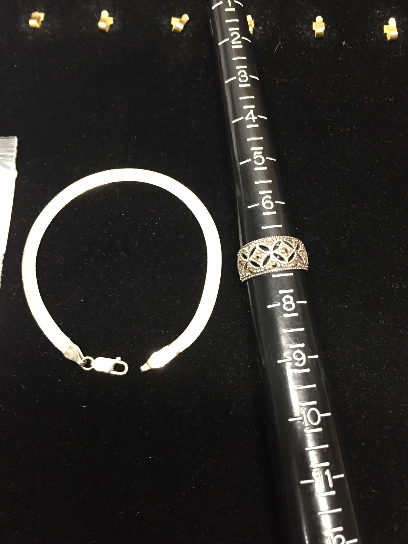 Size 7 Sterling Ring Plus Sterling Silver Bracelet 7.5 inches Long