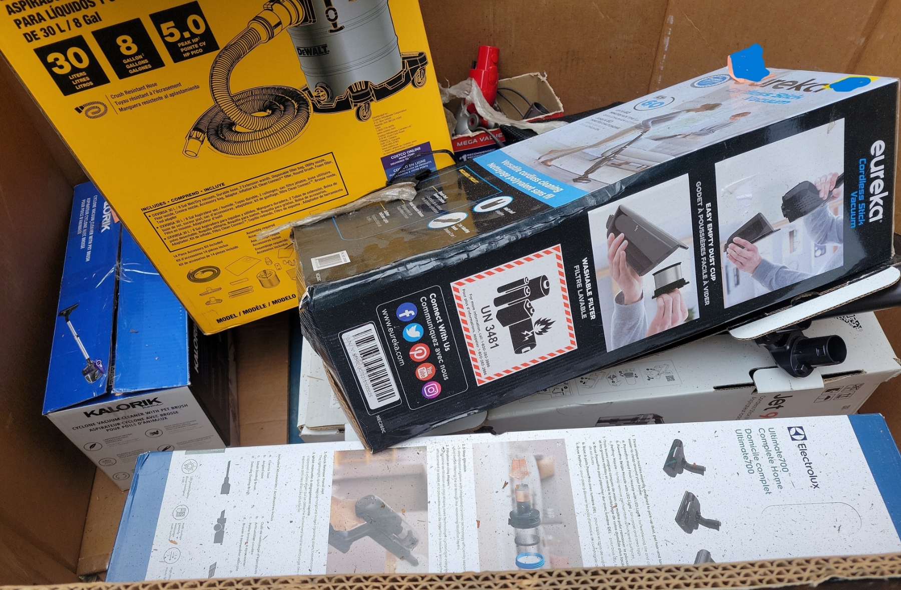 As is. Includes vacuums & Eureka cordless stick vacuum.