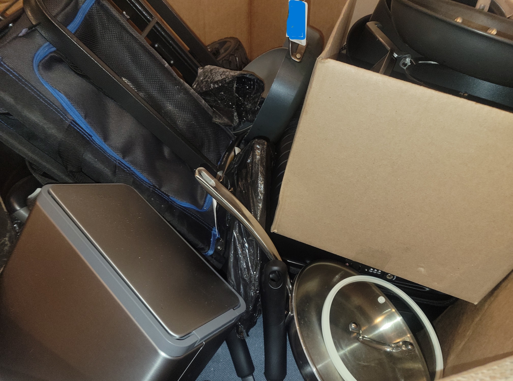 As is. Includes pots, pans, cookware & garbage can.