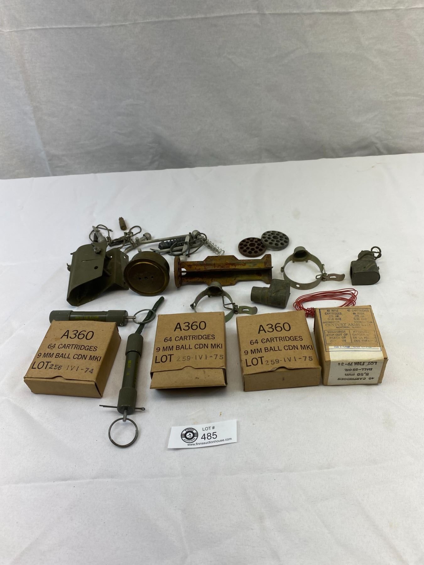 Small Box Lot Of Artillery Shells, Clips, Etc., None Live