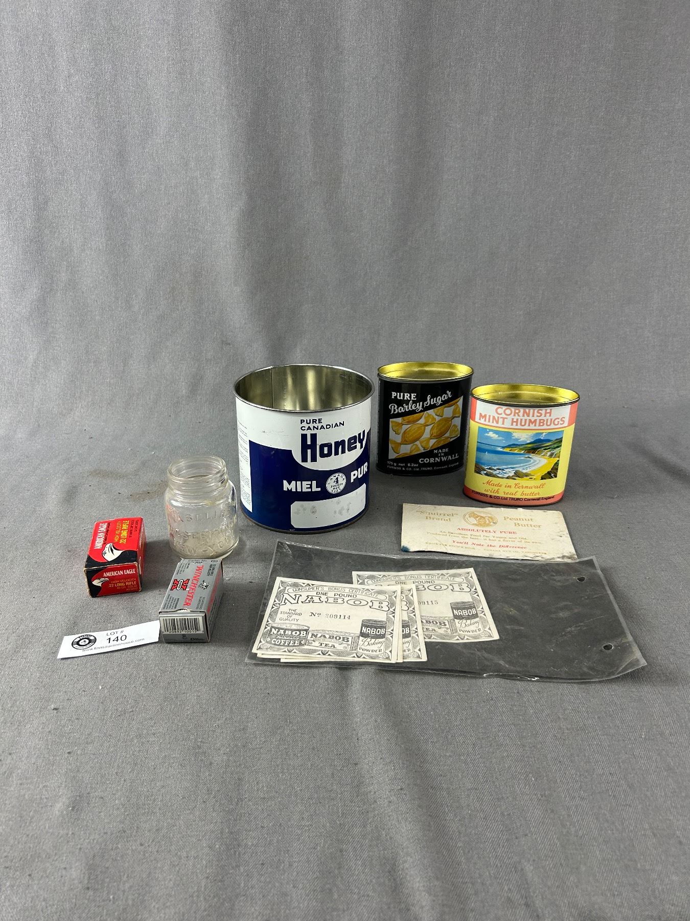 Small Box Lot of Vintage Tins, Boxes + Nabob Coupons