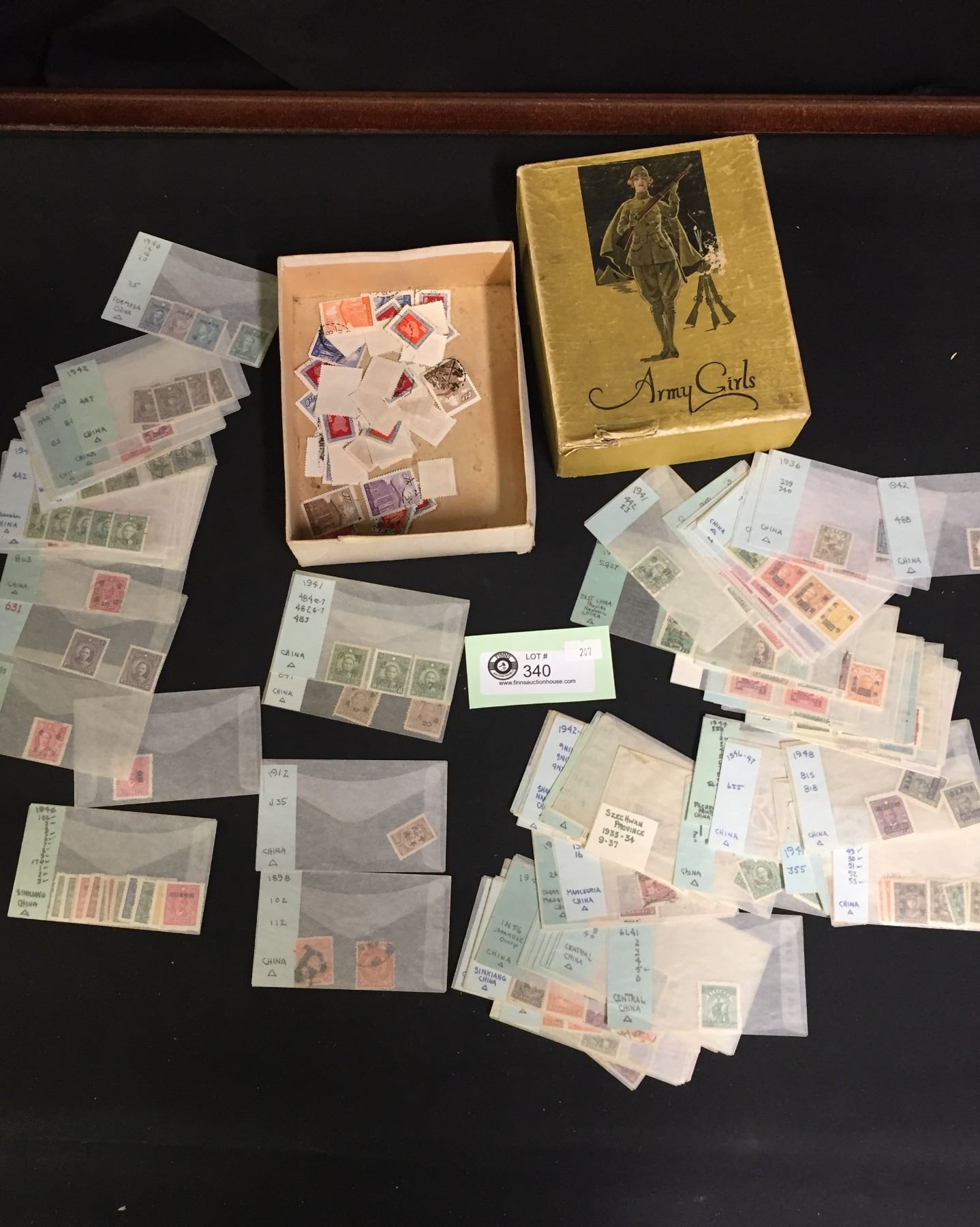 Small Box of Glassine envelopes of Chinese Stamps and Loose ones