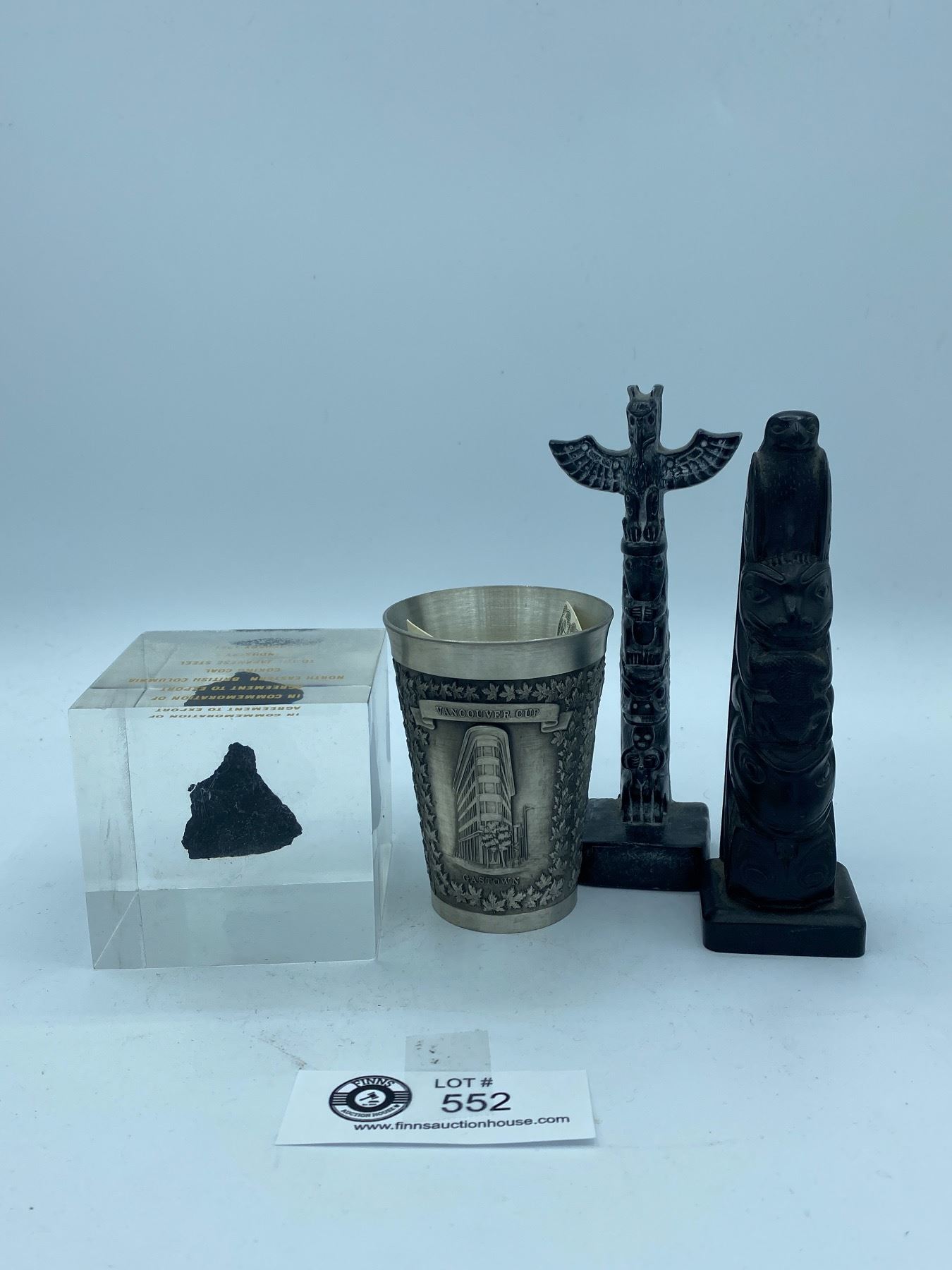 Small Collectible Lot of 2 Totem Poles with Vancouver Pewter Cup etc