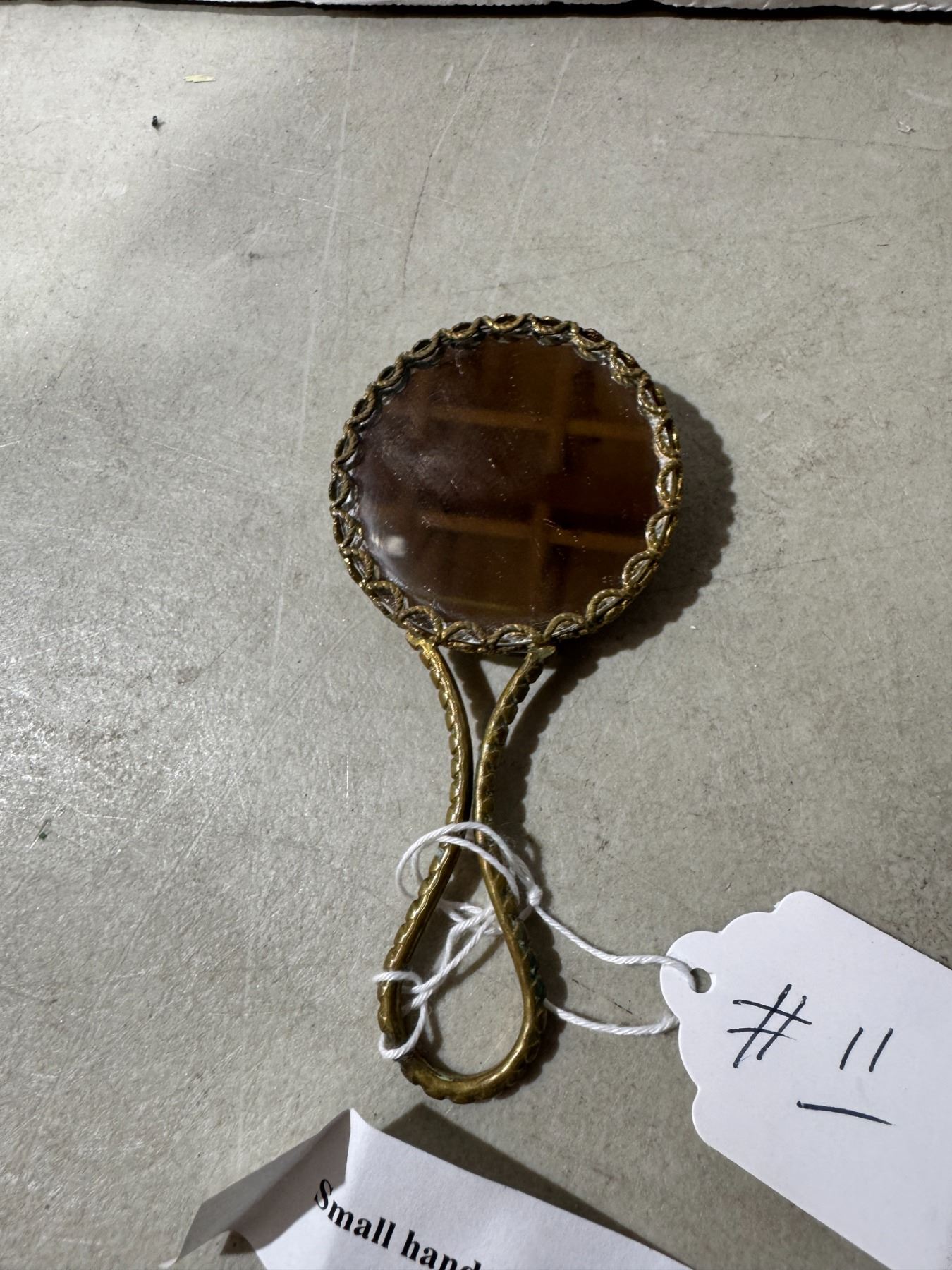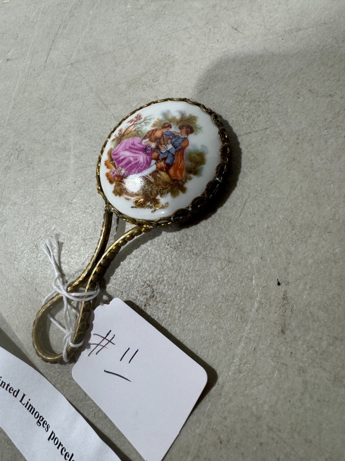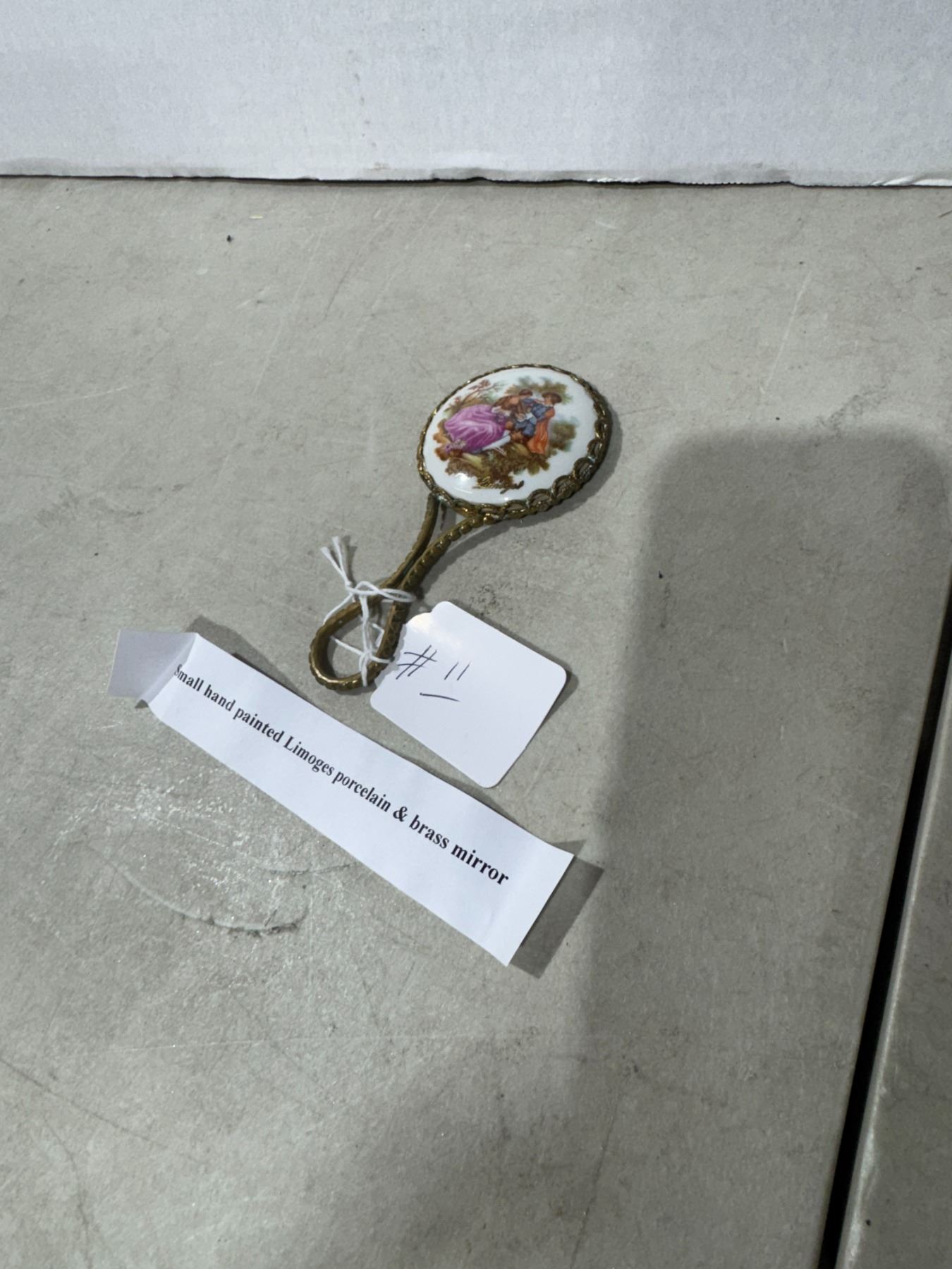 Small Limoge, handpainted, porcelain and brass mirror