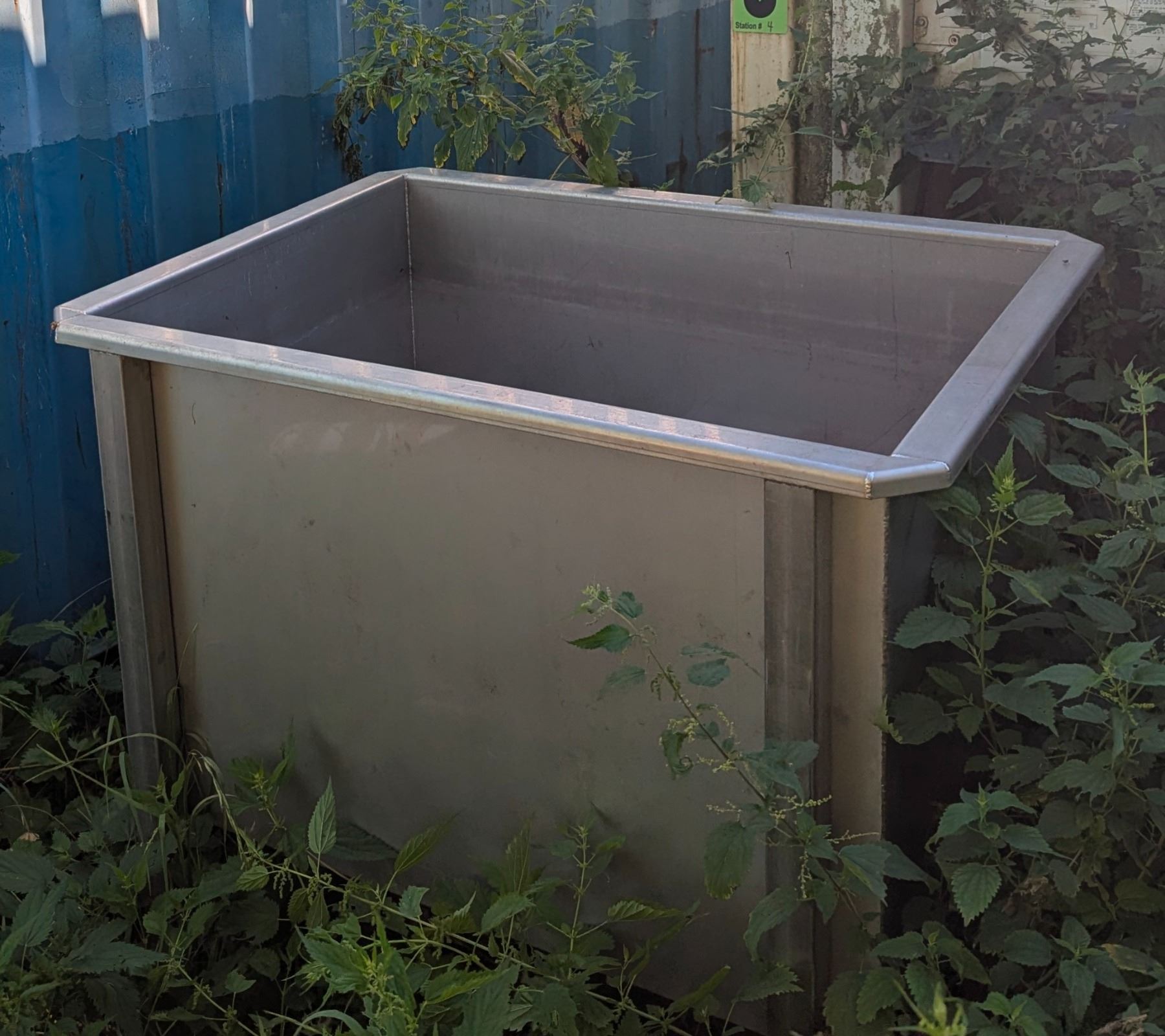 160 gallon stainless steel vat. Used for a soap soak for cheese molds. Can be used for any other brining activity or soaking process or water storage.