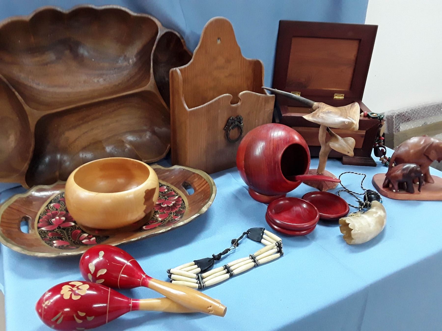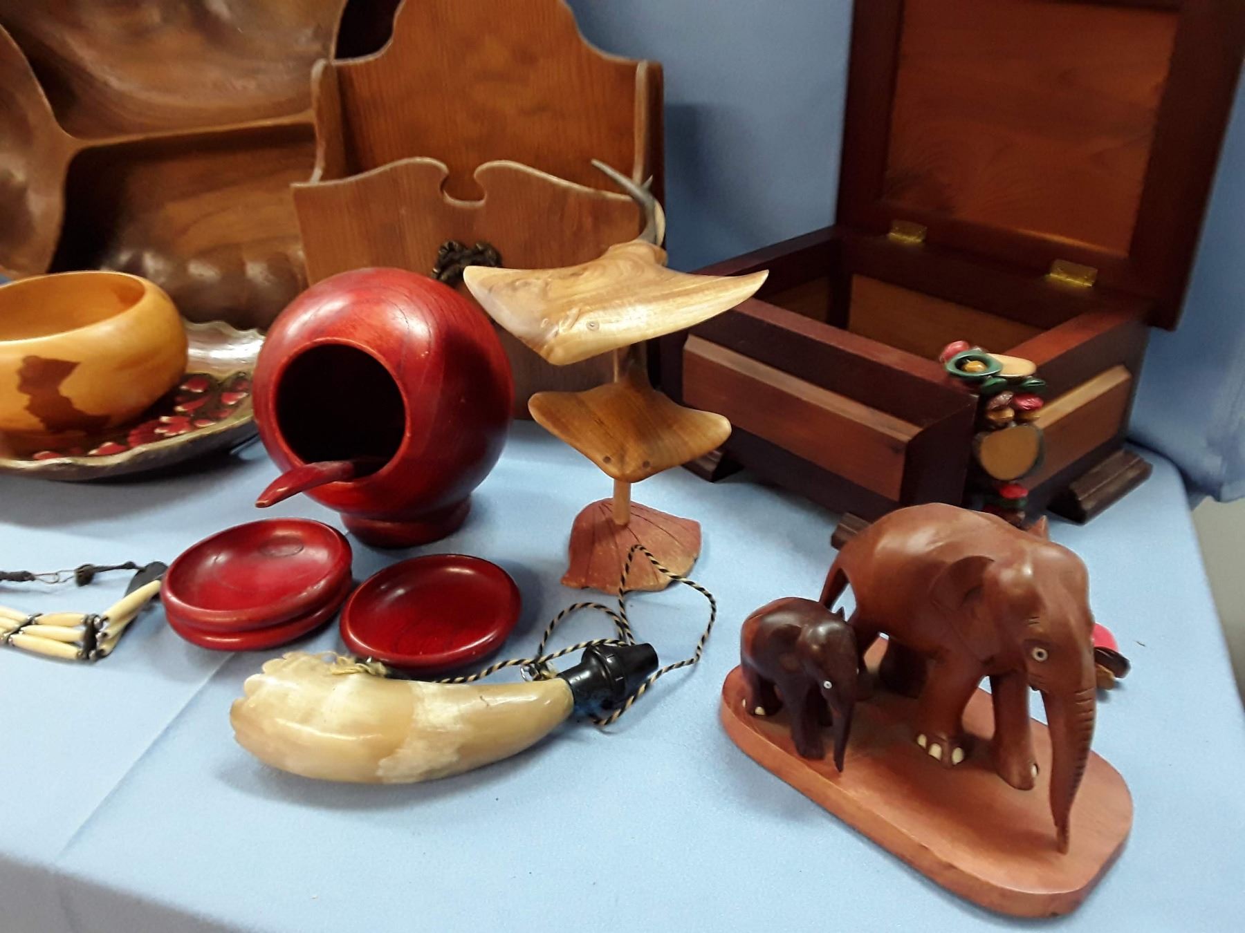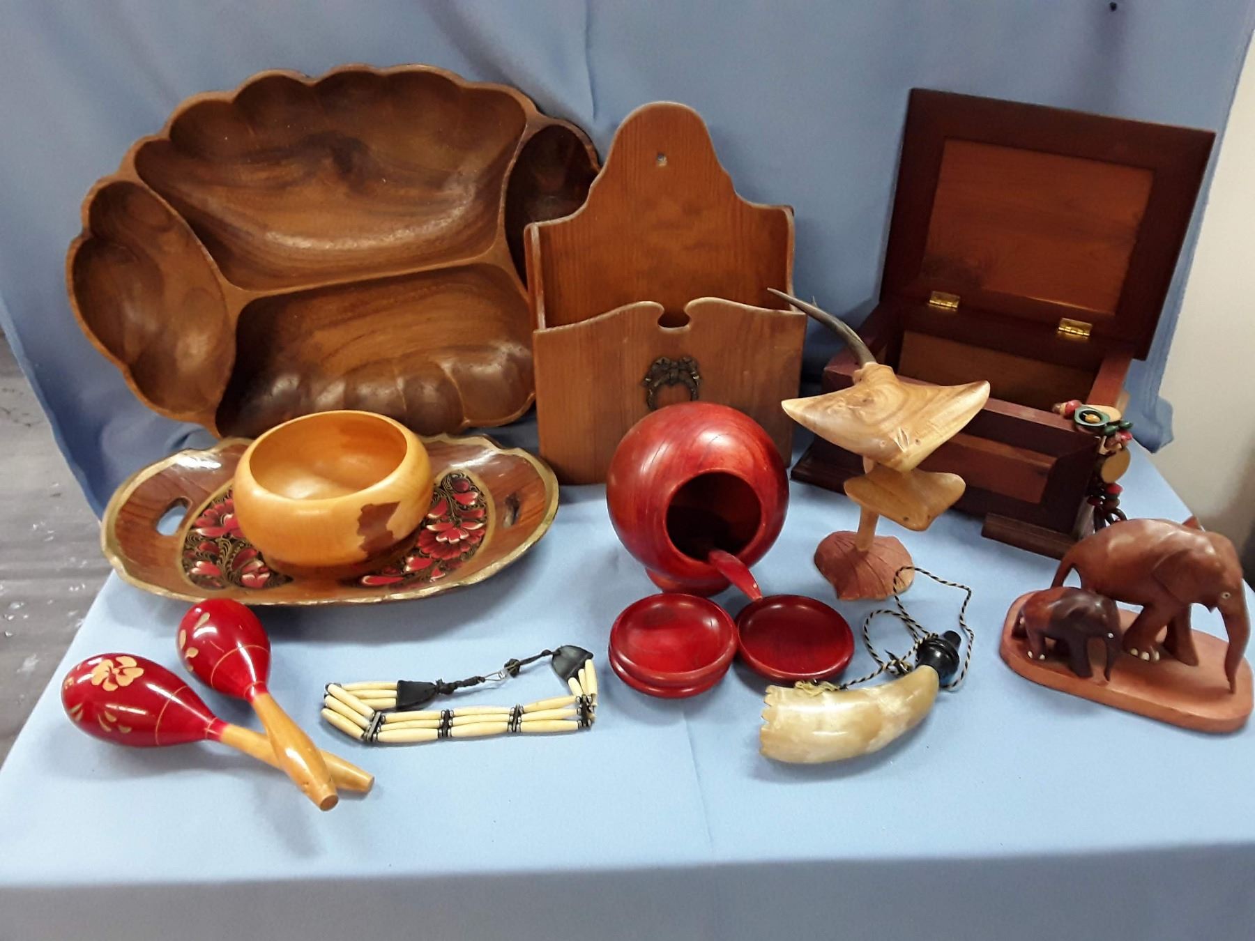 Small Wood Chest, Wood Serving Trays, Carved Stingray, Carved Elephant, + More, - 17% Buyer Fee. Payment Processed through Live Auction World ( Visa or Master Card ) pick up Saturday, or Tuesday