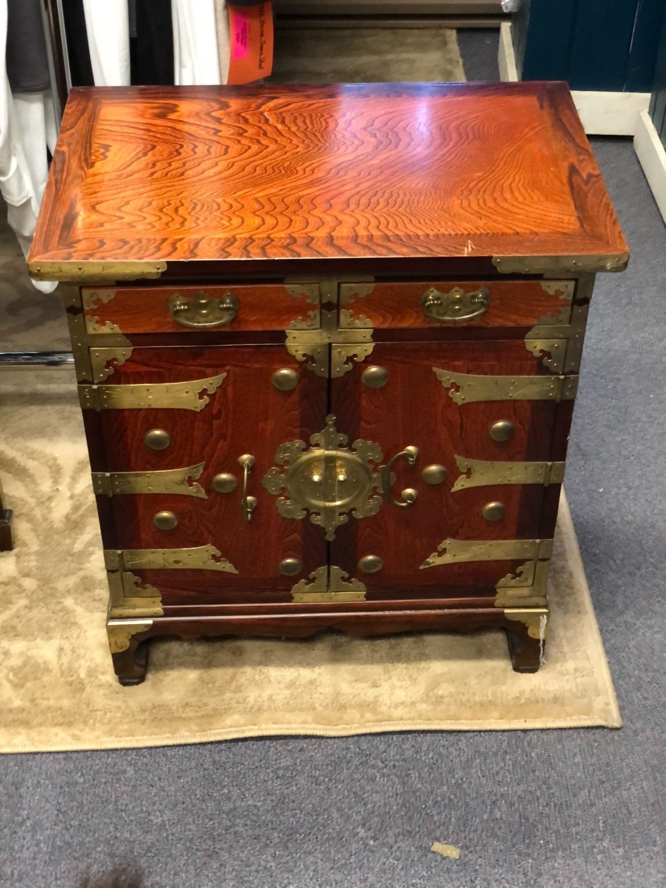 Small oriental wood w/ metal accents 2 drawer cabinet (From the horror drama show)