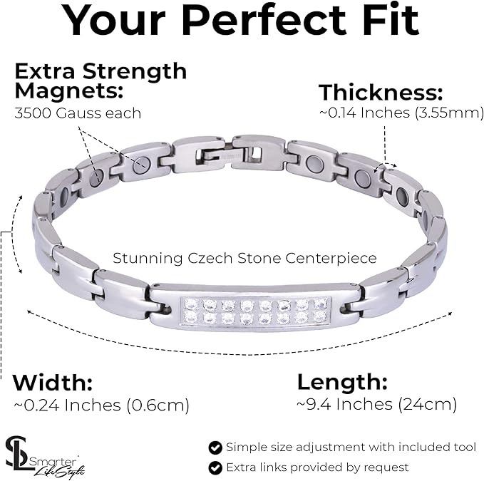 - Smarter LifeStyle Sparkling Titanium Magnetic Therapy Anklet for Women, Arthritis Pain Relief Inflammation Reduction for Feet Ankles - Magnetic Anklet for Women, Womens Magnetic Anklet (Silver)