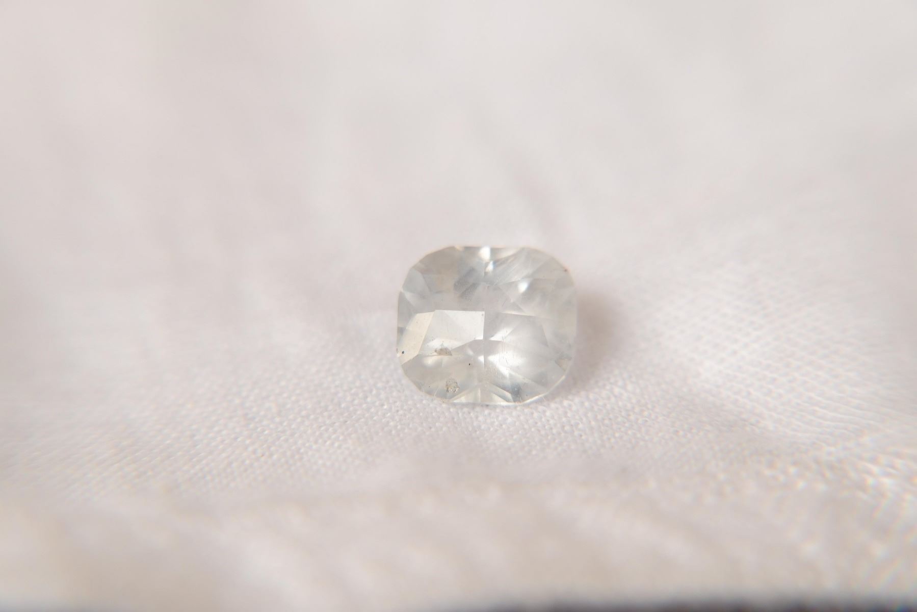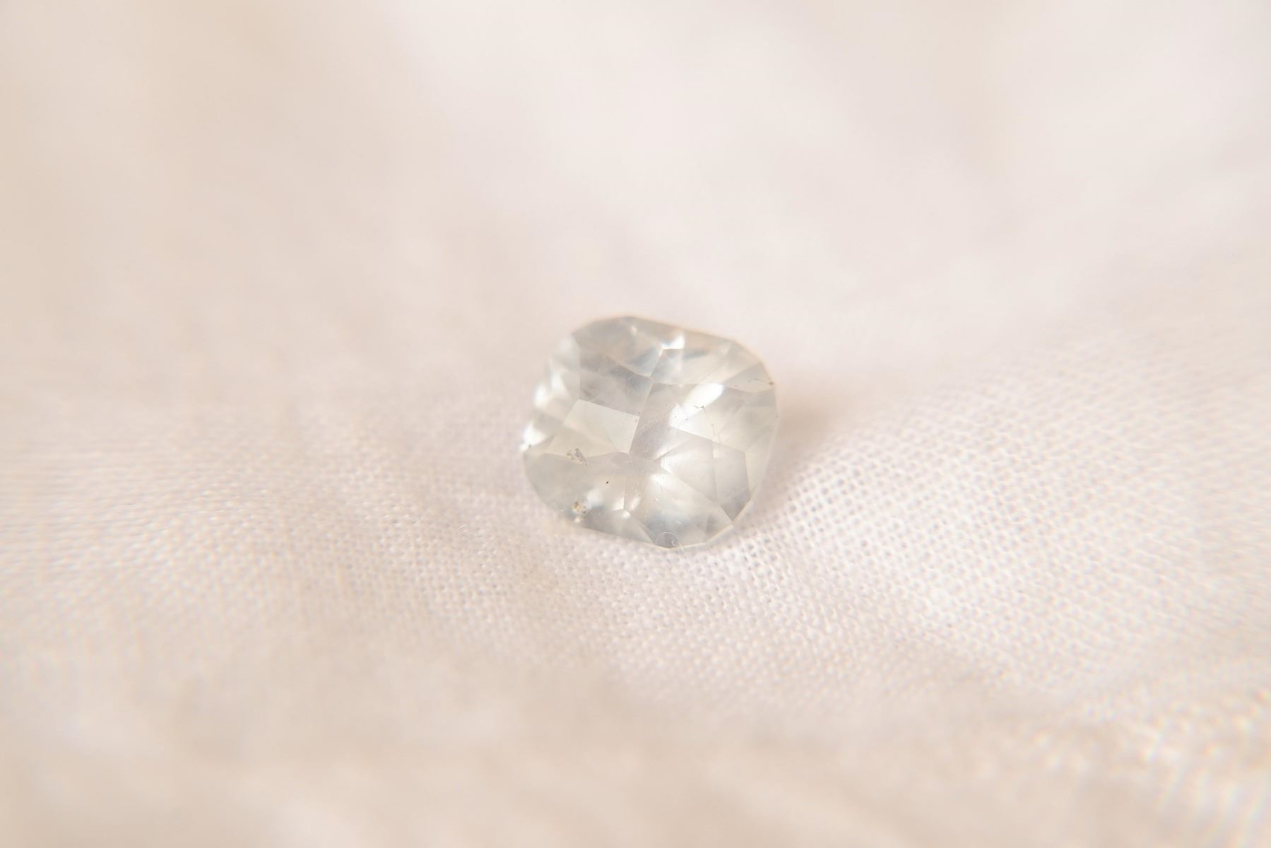 COLOR/COLOUR: Smokey Silver Blue, fine freehand cut Sapphire