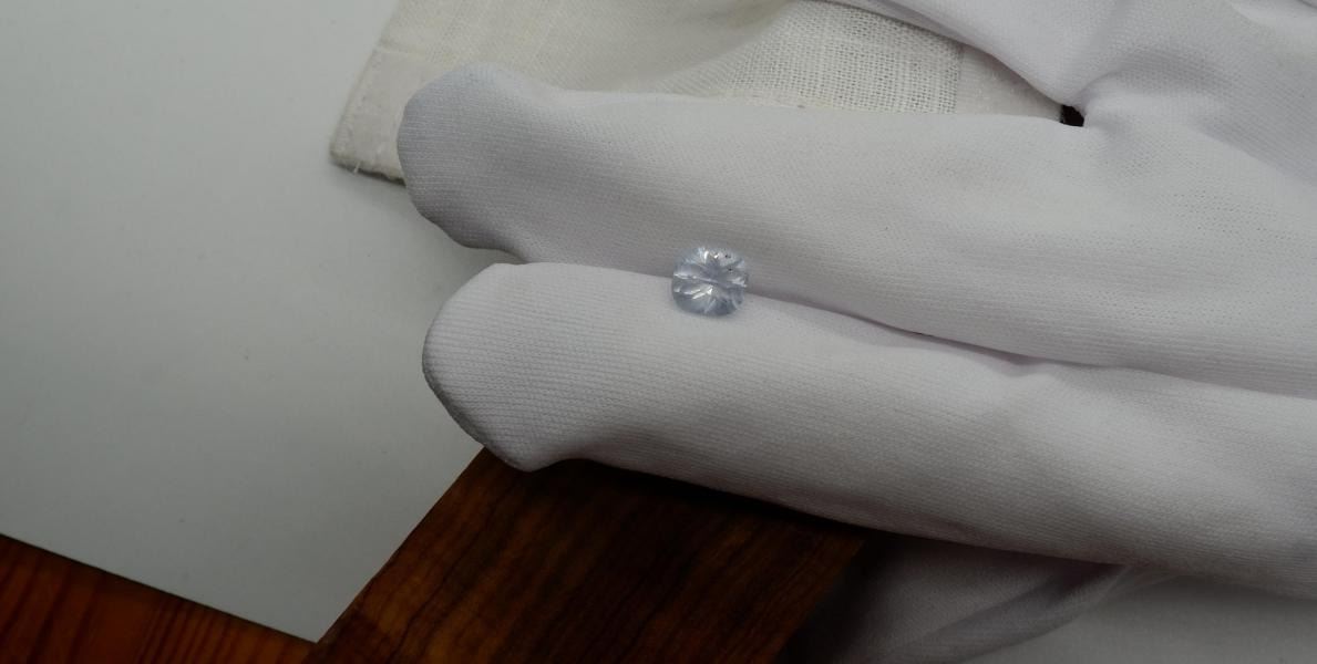 COLOR/COLOUR: Smokey Silver Blue, fine freehand cut Sapphire