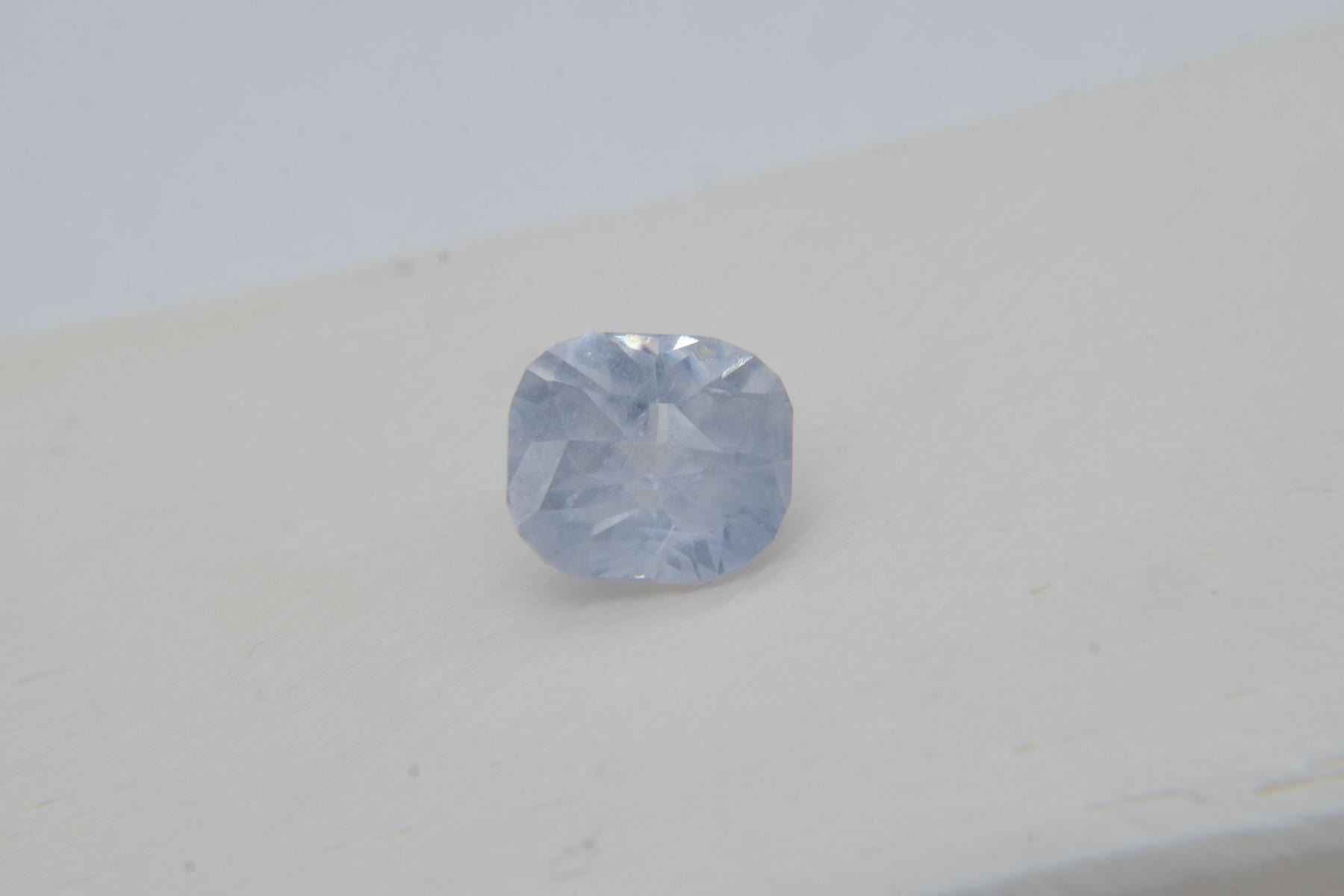 loose faceted precious sapphire, brand new without tags from Sri Lanka. GEMSTONE TYPE: Genuine Sri Lanka, Ceylon sapphireRECOMMENDED JEWELRY SETTINGS: Men Rings, Men Jewelry, Women Vintage Rings, Art JewelryCERTIFICATE: CorundumStones Mining Genuine Gem Lab report included. GIA/AGL/IGL/GRS Gem Lab reports/memos available, please specify during checkout.ORIGIN: Sri LankaCARAT SIZE: 2.19DIMENSIONS: Length 7.74 x Width 6.97 x Depth 5.10 mmSHAPE/CUT: premium handcrafted freehand checkerboard cushion, cushion rectangular cutTREATMENTS: None (No Enhancement)COLOR/COLOUR: Smokey Silver BlueGIA COLOR CODE: BCLARITY: VS (eyeclean)SATURATION: 4=mstTONE: 4=mlFINISH & POLISH: excellent