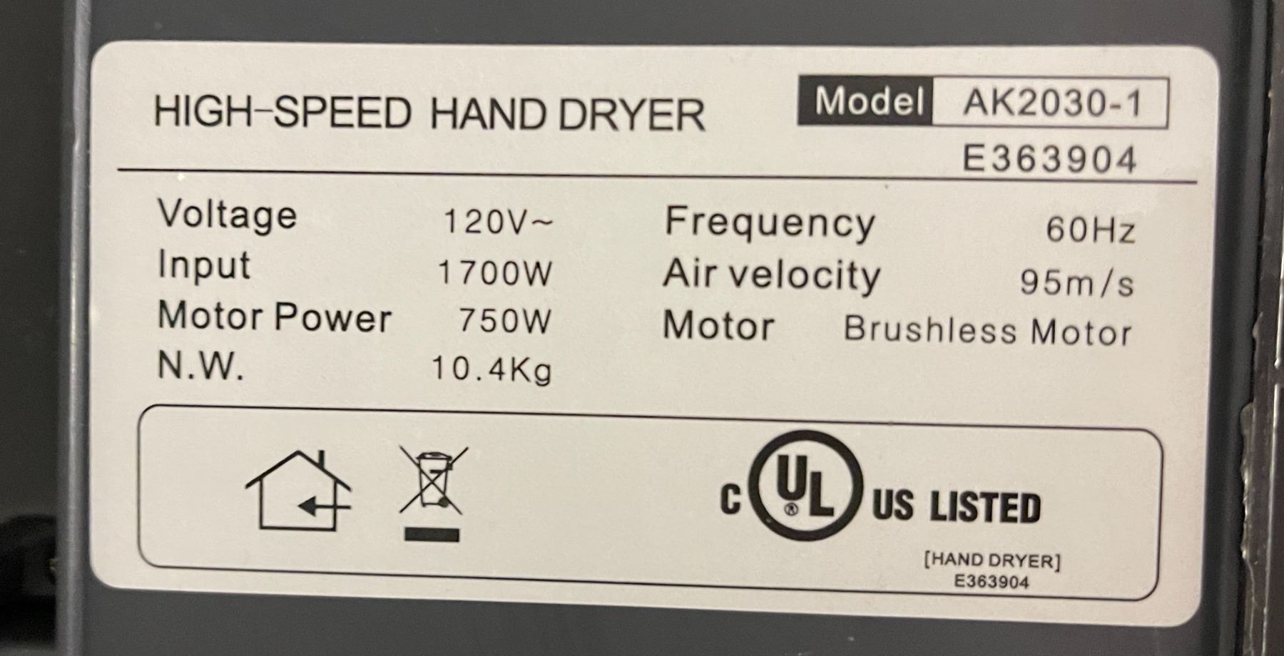 Snail-Tech - Premium Commercial Jet Hand Dryer - Double-Sided (Silver) - model: AK2030-1