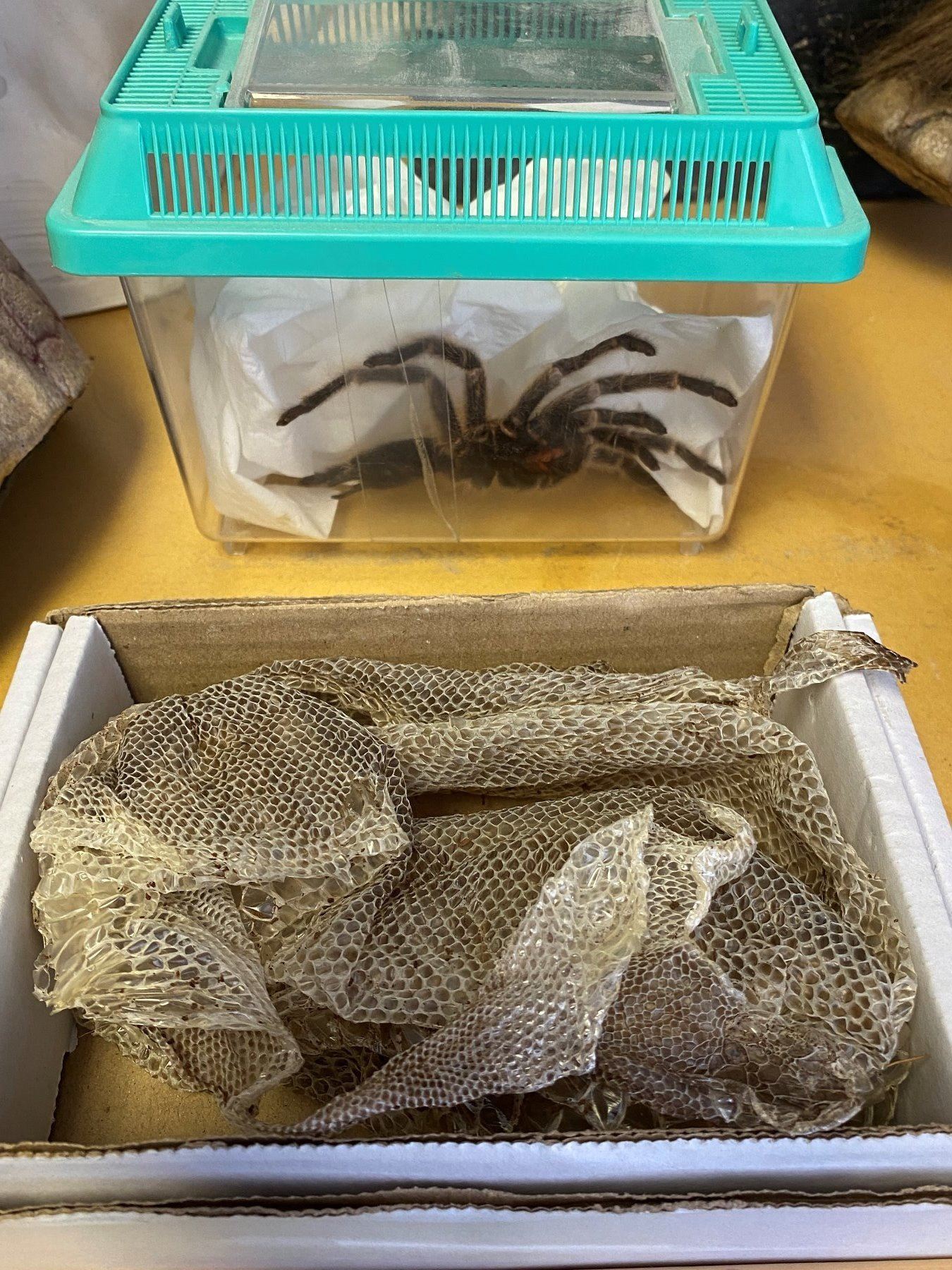 Snake skin & Tarantula props from special effects studio