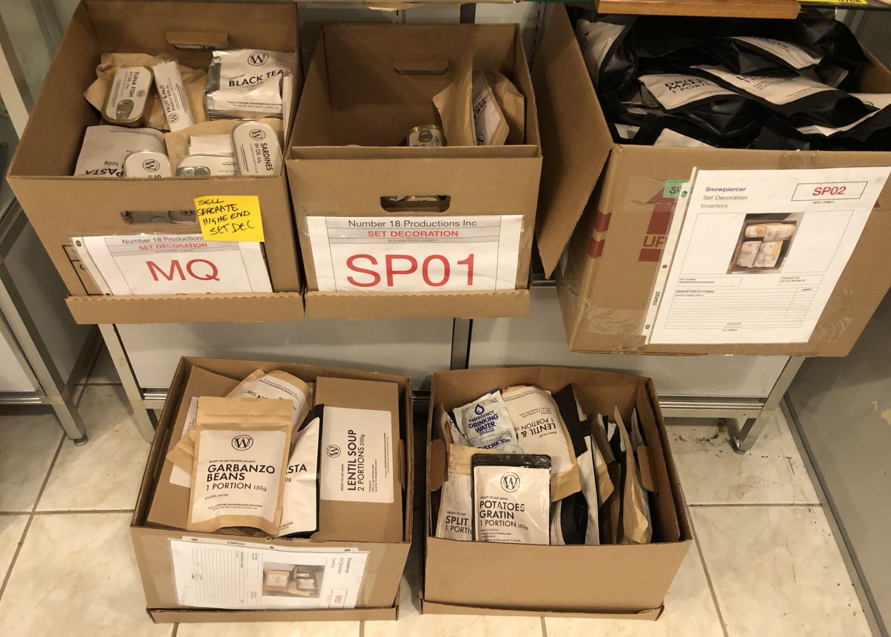 "Snowpiercer" Engine prop food content - includes prop bags of pasta/sardines/tuna fish/peanut butter/dried mangos etc.