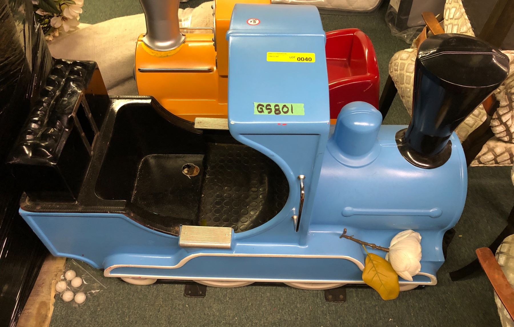 "Snowpiercer" Kids blue & black riding train (approx. 54in long x 20in wide x 38in height)