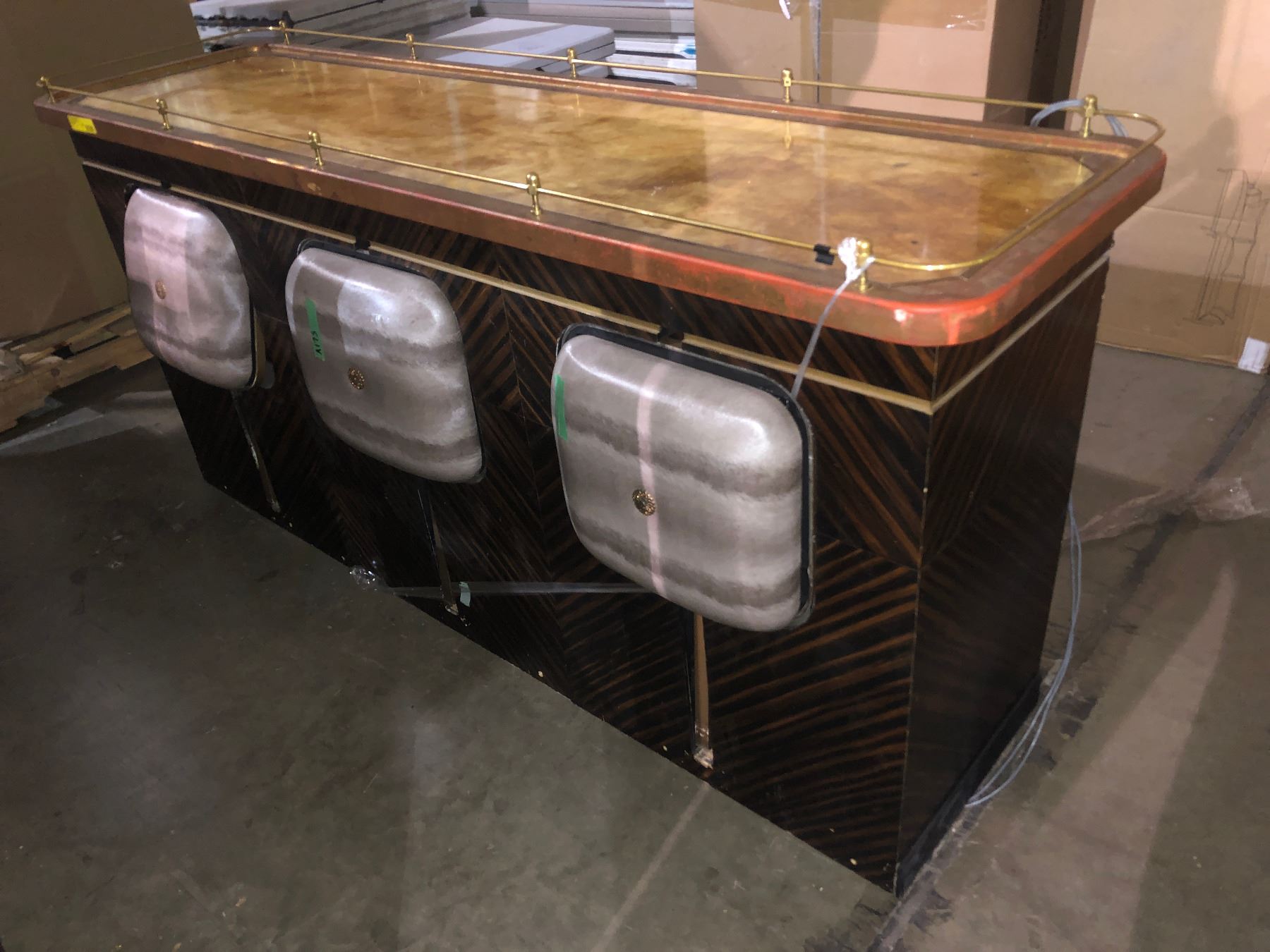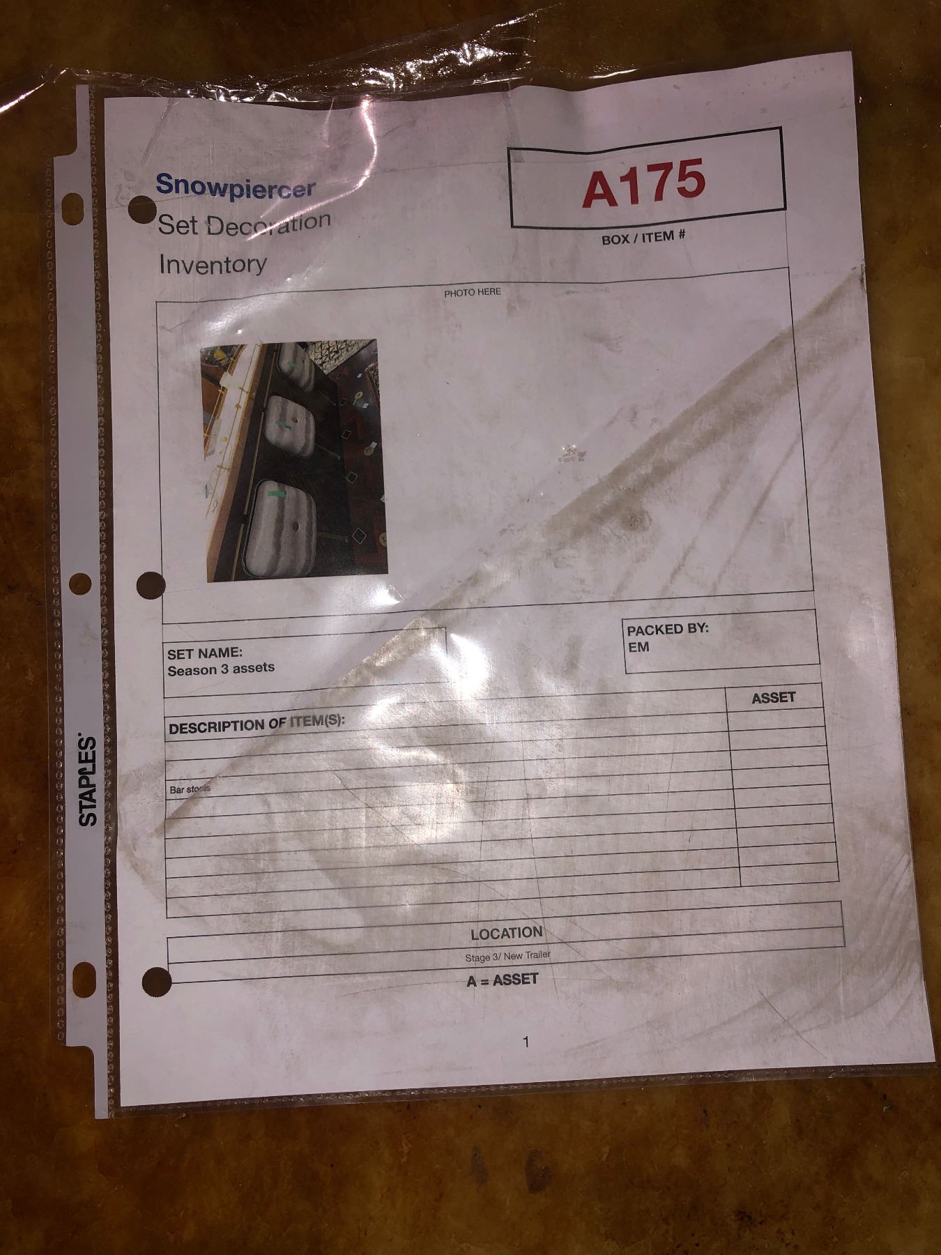 "Snowpiercer" Season 3 - Custom made bar table/bar station w/ built-in attached barstools (approx. 78 1/2in wide x 22in depth x 37 1/2in height)
