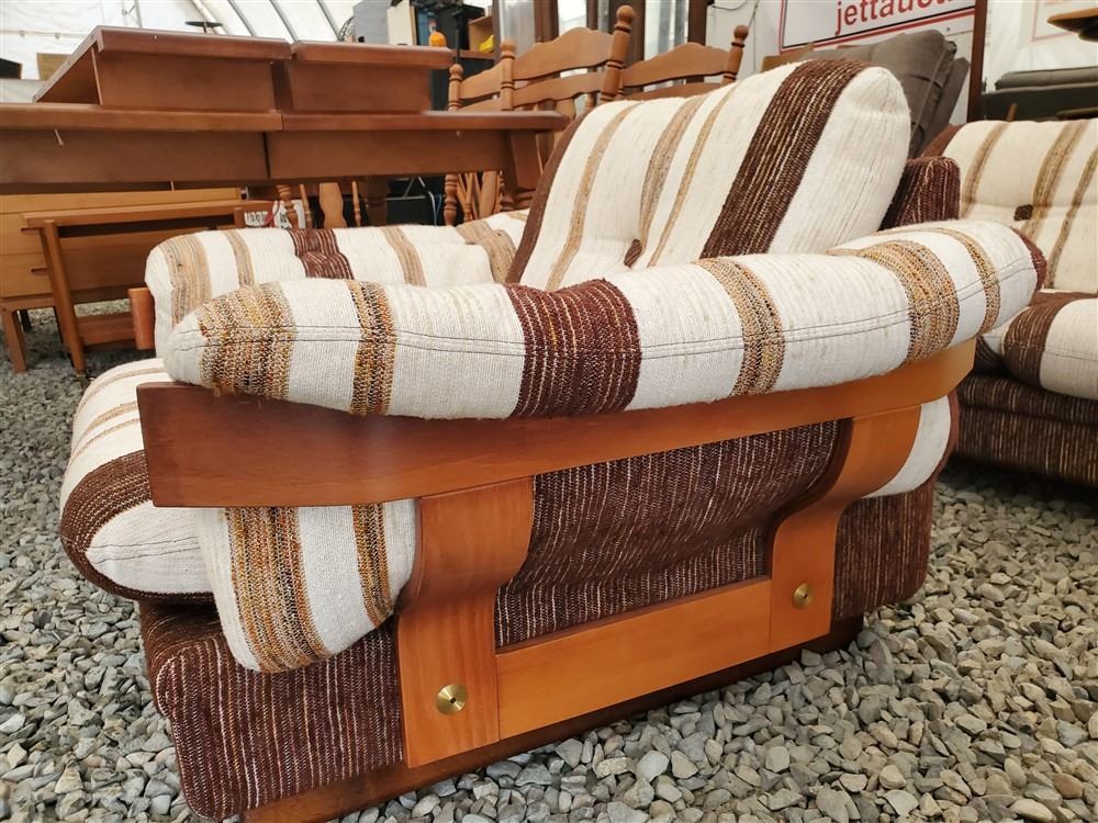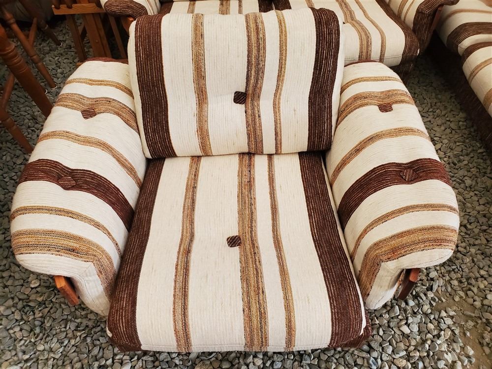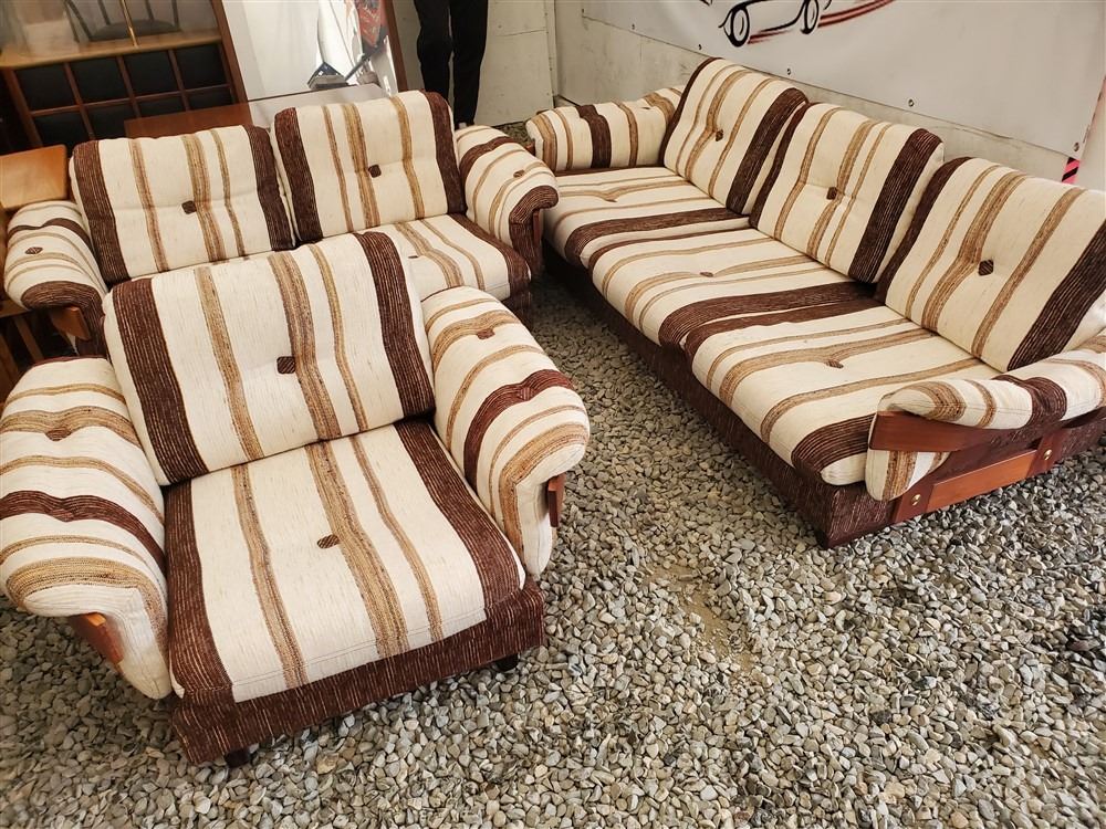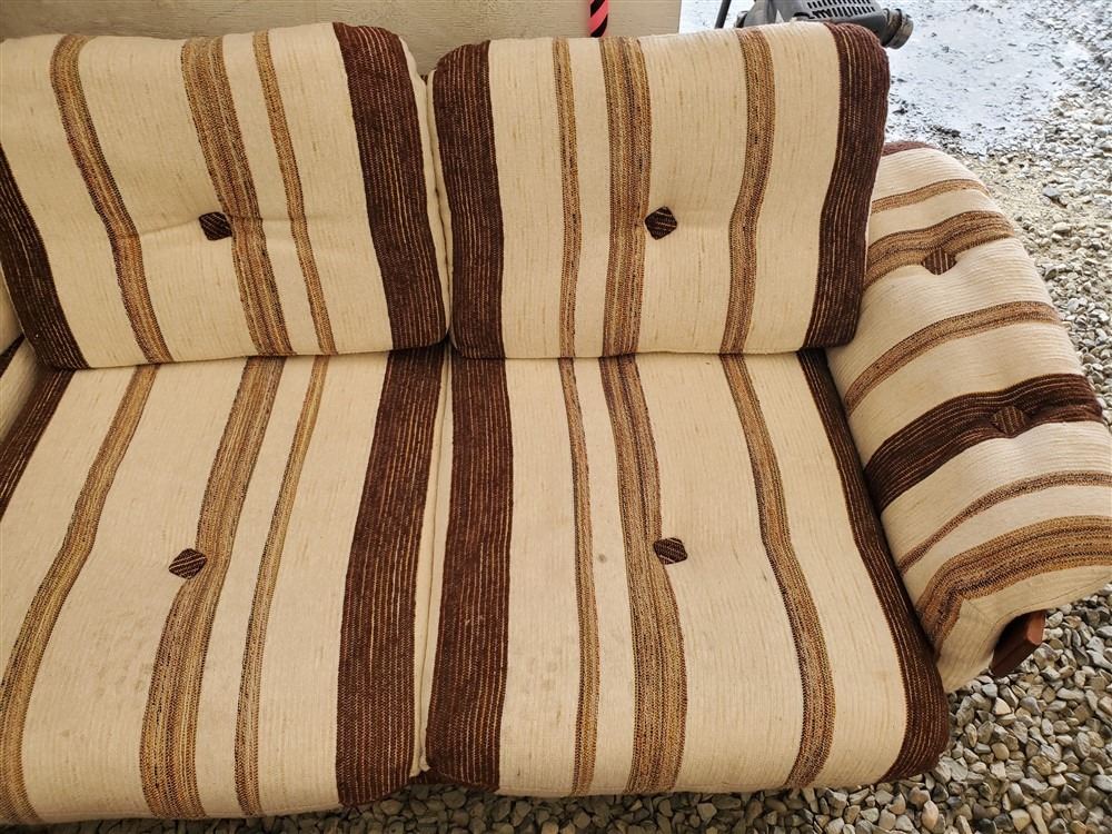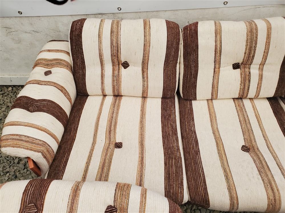 Sofa, Love Seat and Chair with teak accents Most Items have not been tested - 17% Buyer Fee. Payment Processed through Live Auction World ( Visa or Master Card ) pick up Saturday, or Tuesday