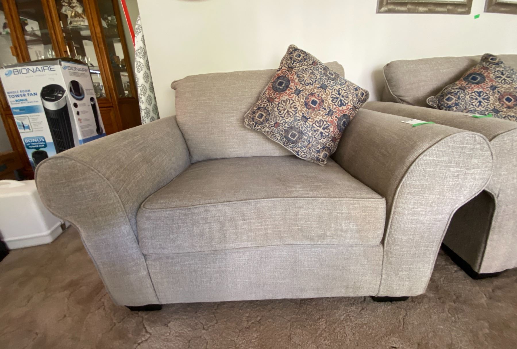 Some call it a 1-1/2 seater or small sofa or oversized chair. Measures 48"W x 38"D x 34"H. Bring help to load.