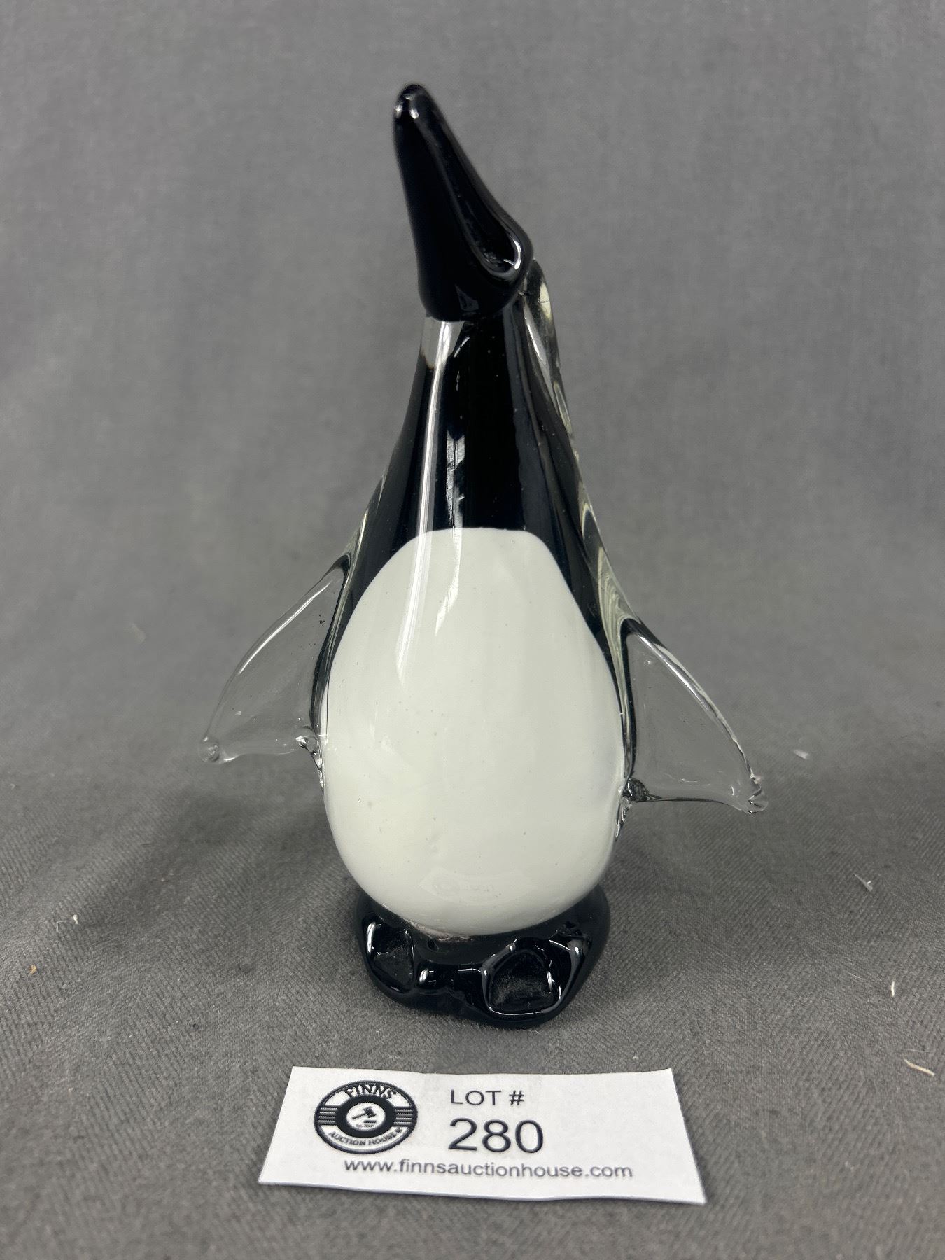 Solid Art Glass Black & White Penguin. Approx. 6"H