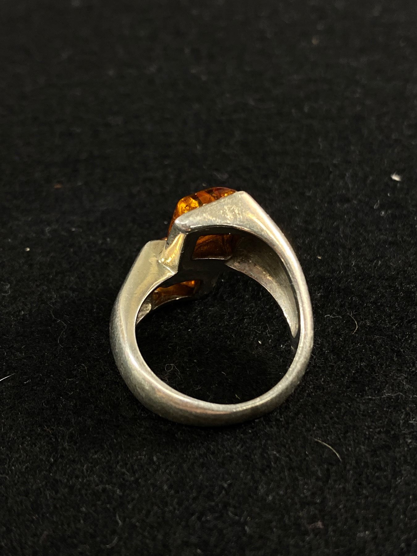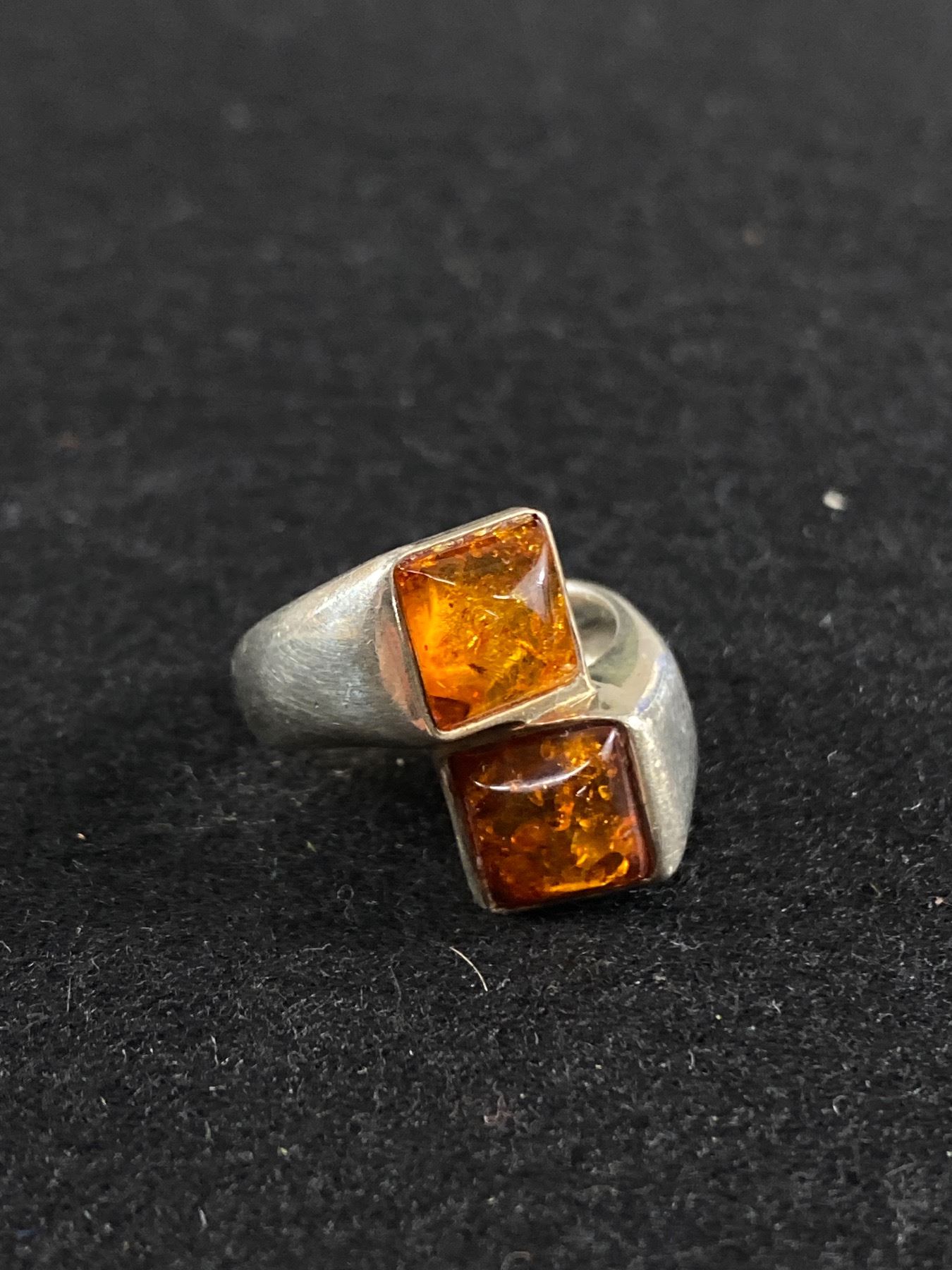 Solid Sterling Silver ( Tested) with 2 Natural Honey Amber Stones Ring