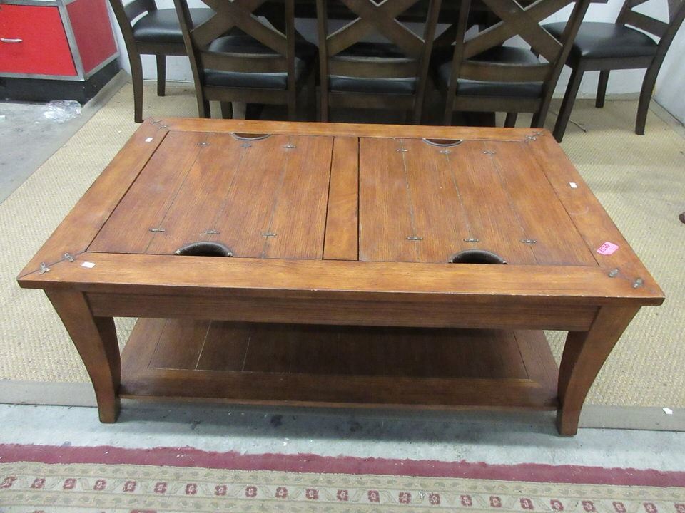 Tops lifts off on each side.30" x 48" x 19" tall.