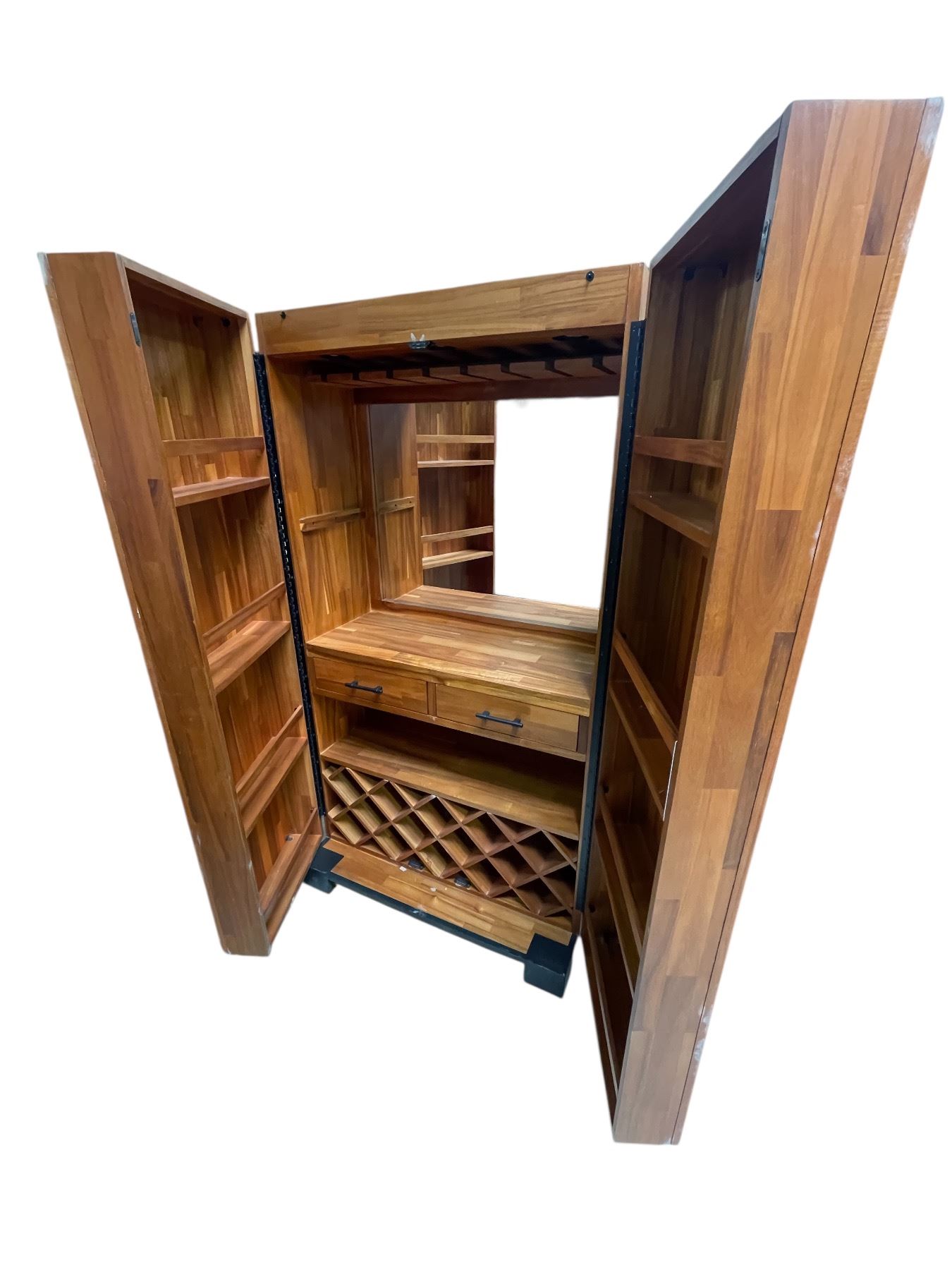 Solid Wood Double-Door Bar Cabinet with Shelves, Drawer & Wine Rack
