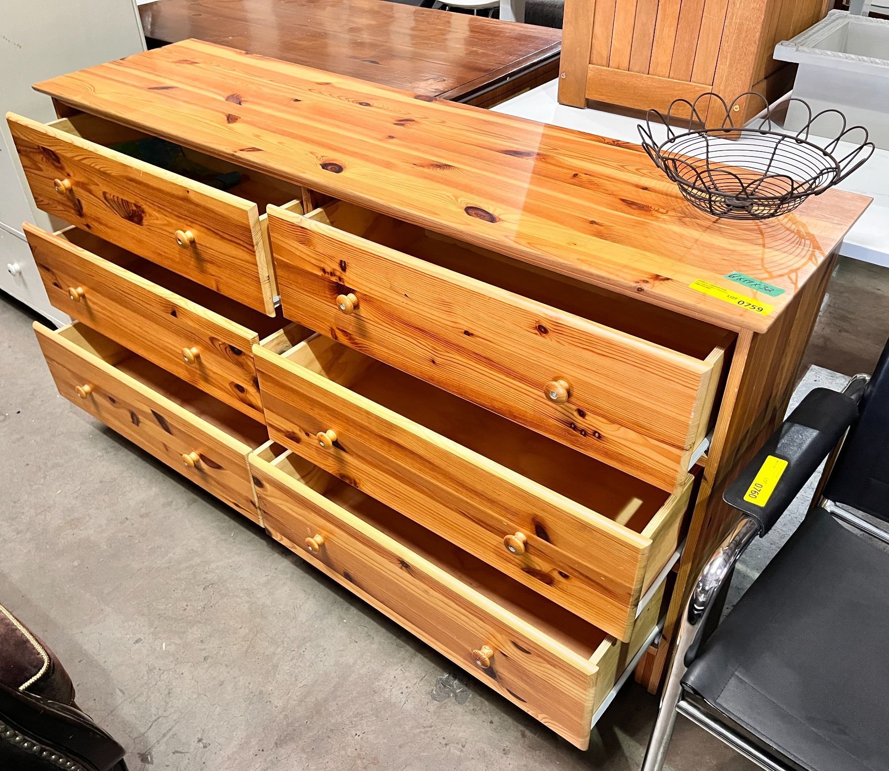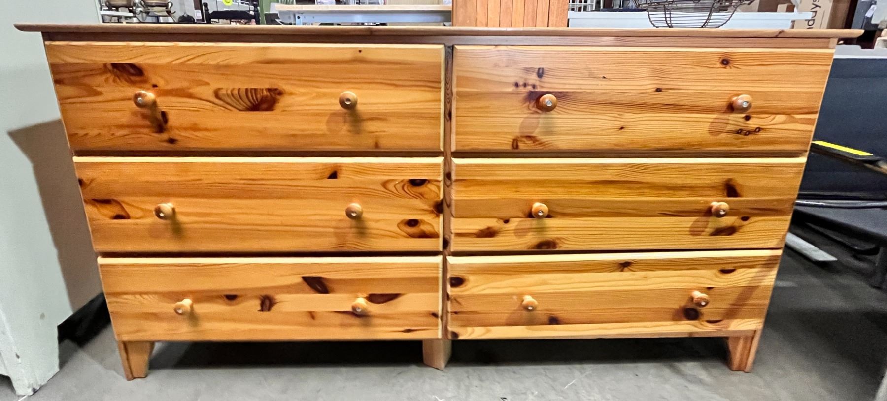 Solid pine 6-drawer dresser (approx. 61in W 17in D 32in H)