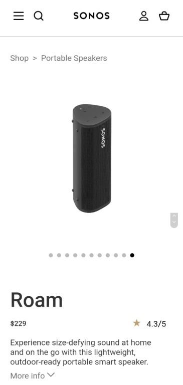 Sonos Roam Black Portable Wireless Bluetooth Speaker - Retail $229