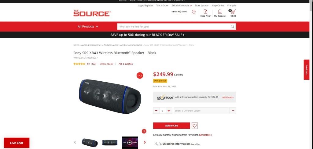 Sony SRS-XB43 Wireless Bluetooth Speaker - Black Tested and Working Retail $350