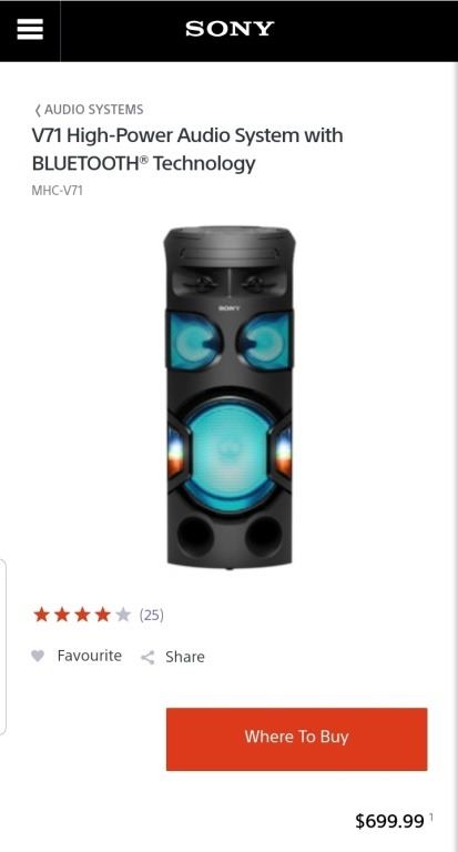 Sony V71 High-Power Audio System with BLUETOOTH® Technology - Retail $699.99 - working