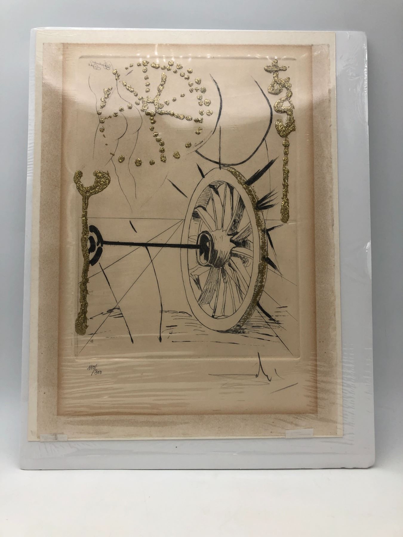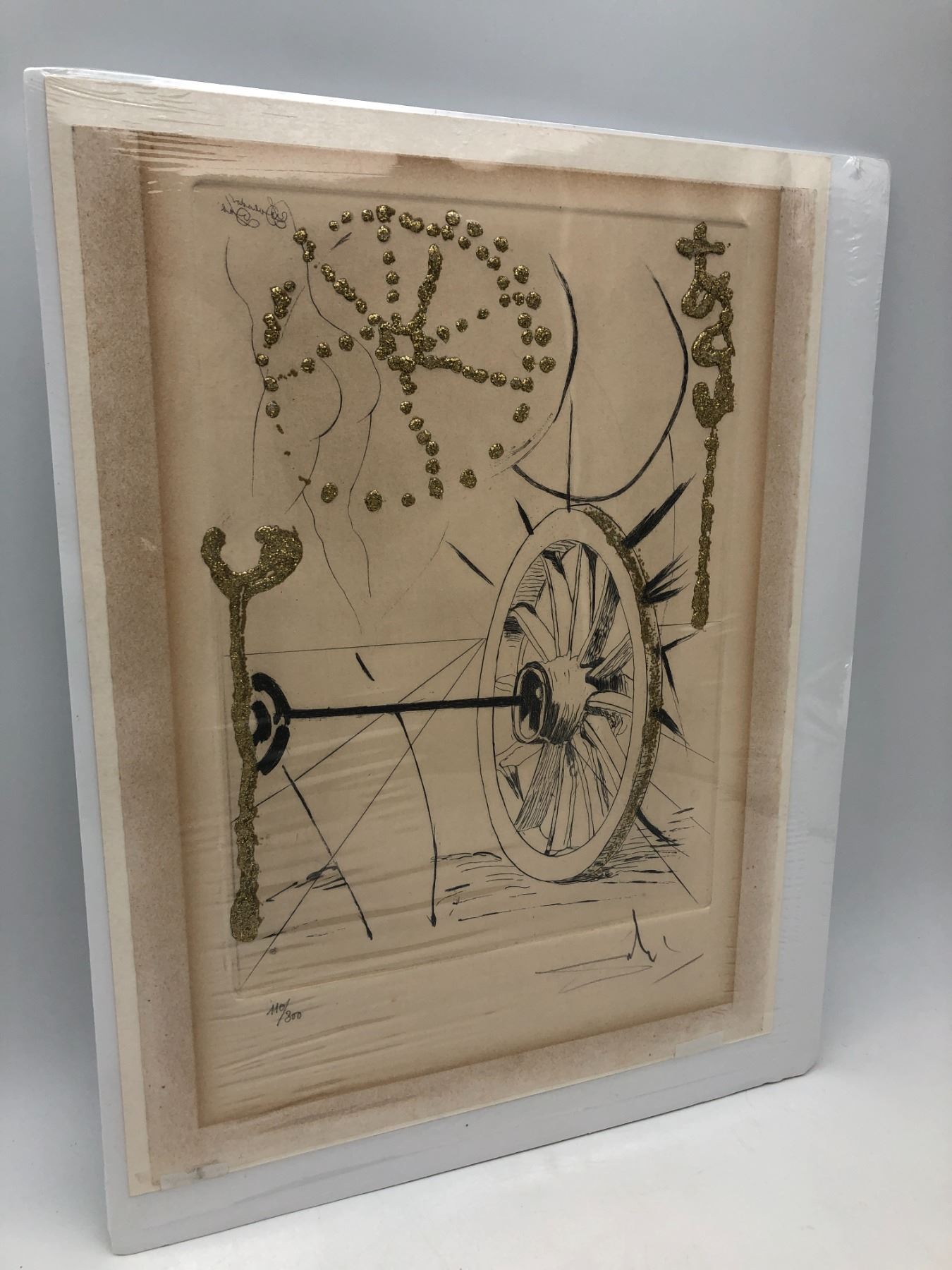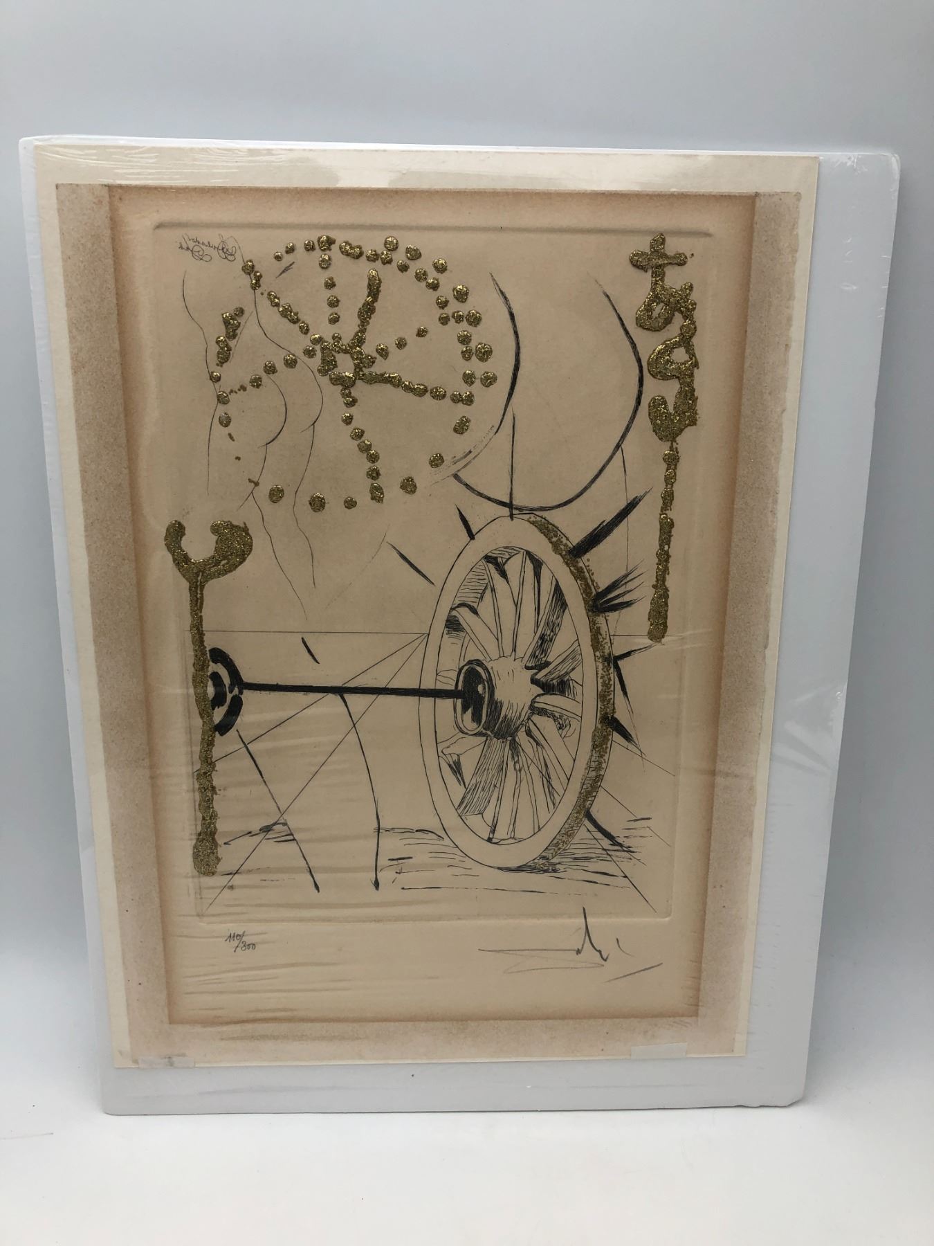 Spanish Artist "Salvador Dali" RARE artwork, Bonne fortune et fortune ( Good Fortune & fortune ) etching with gold flakes