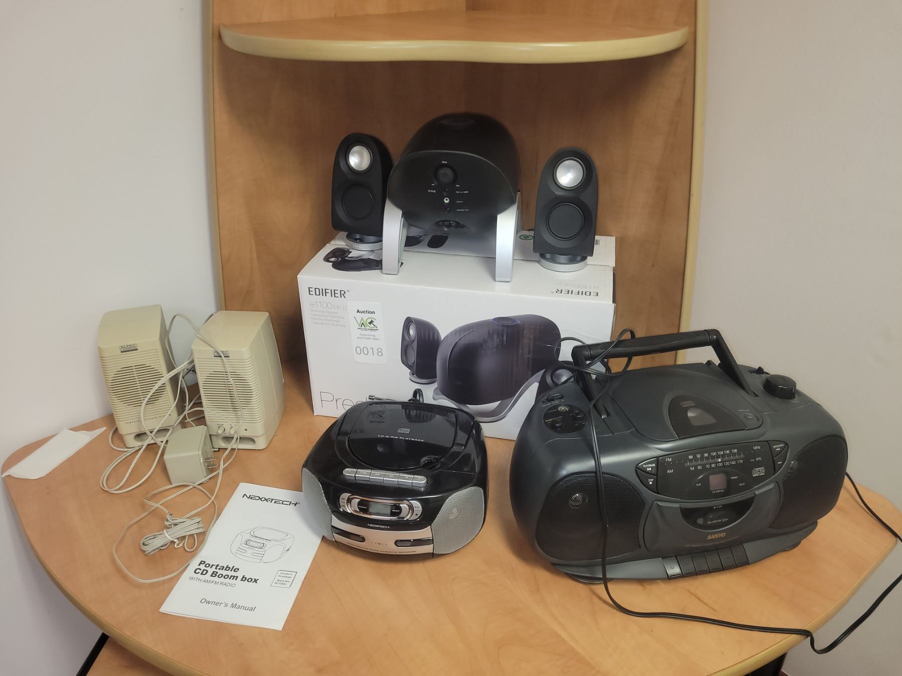Predator multimedia speaker, NexxTech portable boom box, Altec Lansing speakers. Pick up 9-10