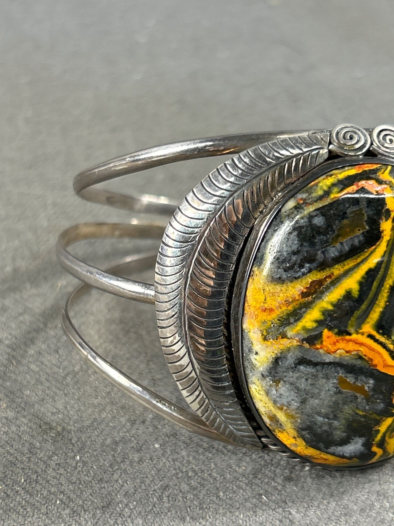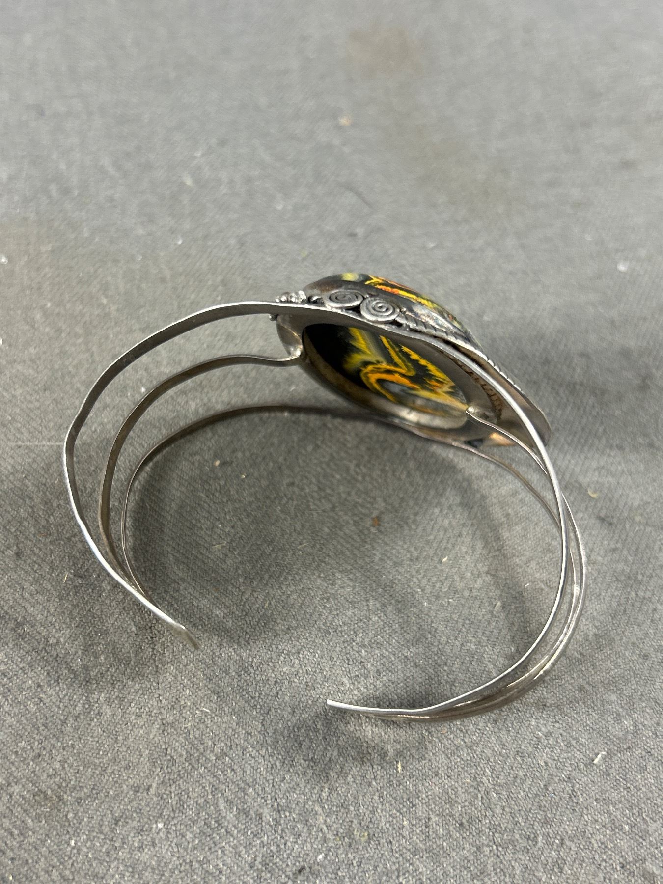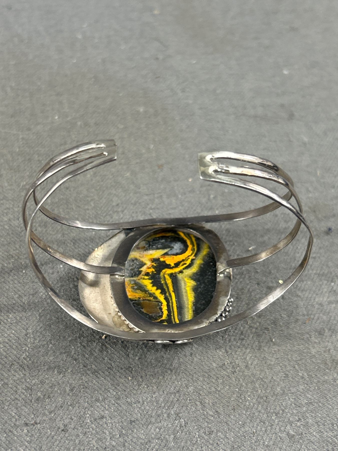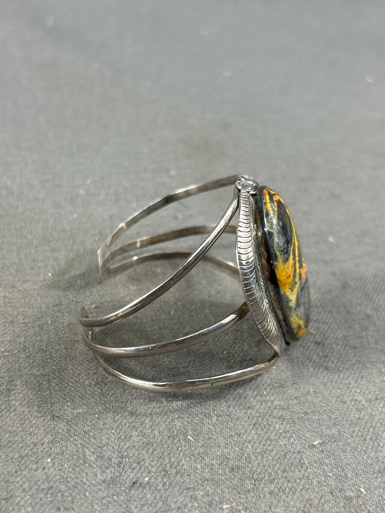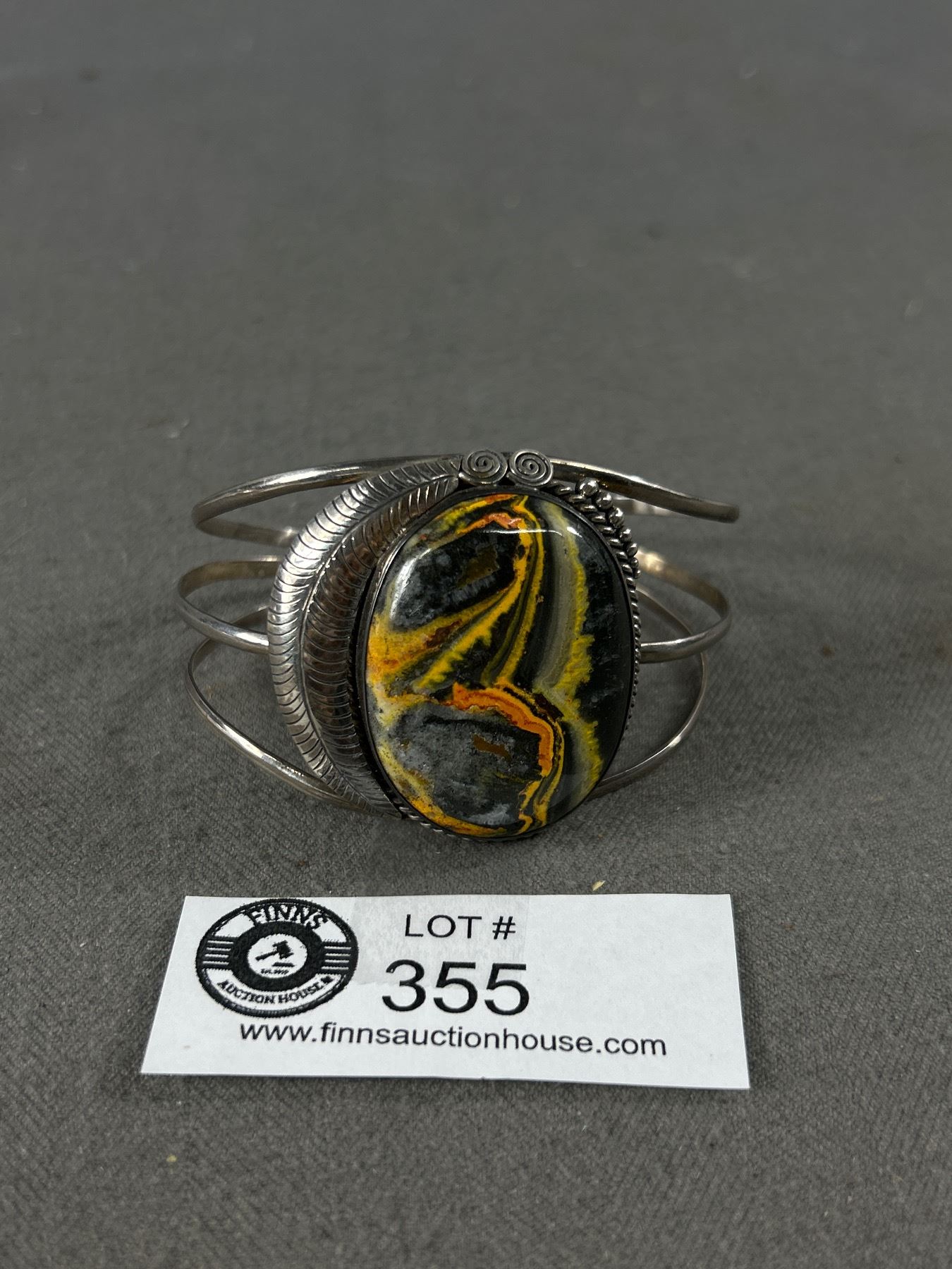 Spectacular Vintage South Western Cuff Marked 925 Sterling Silver Unusual Gemstone