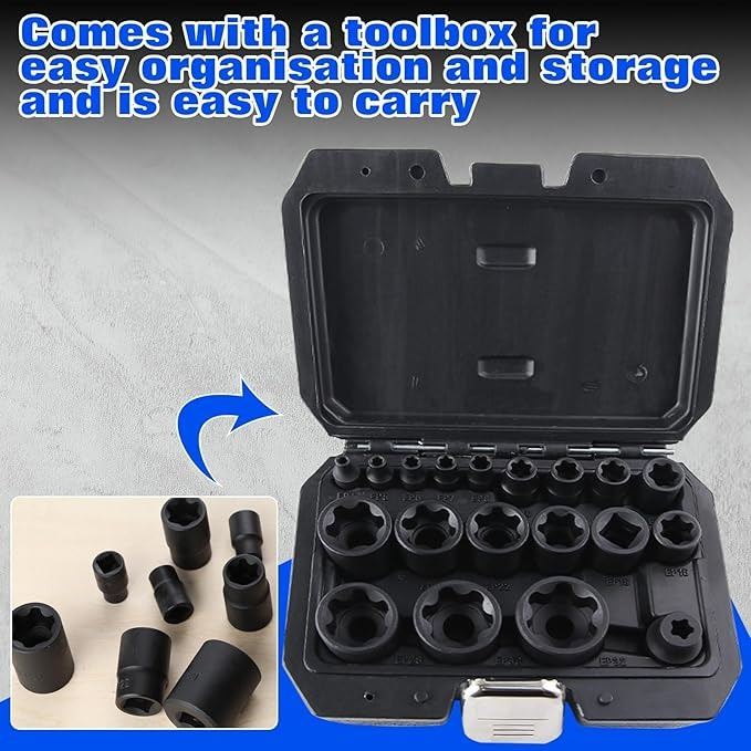 - SPEEDWOX 19Pcs 1/2" 3/8" 1/4" Dr.External Star Socket Set 3/8 Drive External Torque Socket Set External Torx Plus Socket Set External Torx Socket Set Star Bit Socket Set 3/8 Torx Socket Set