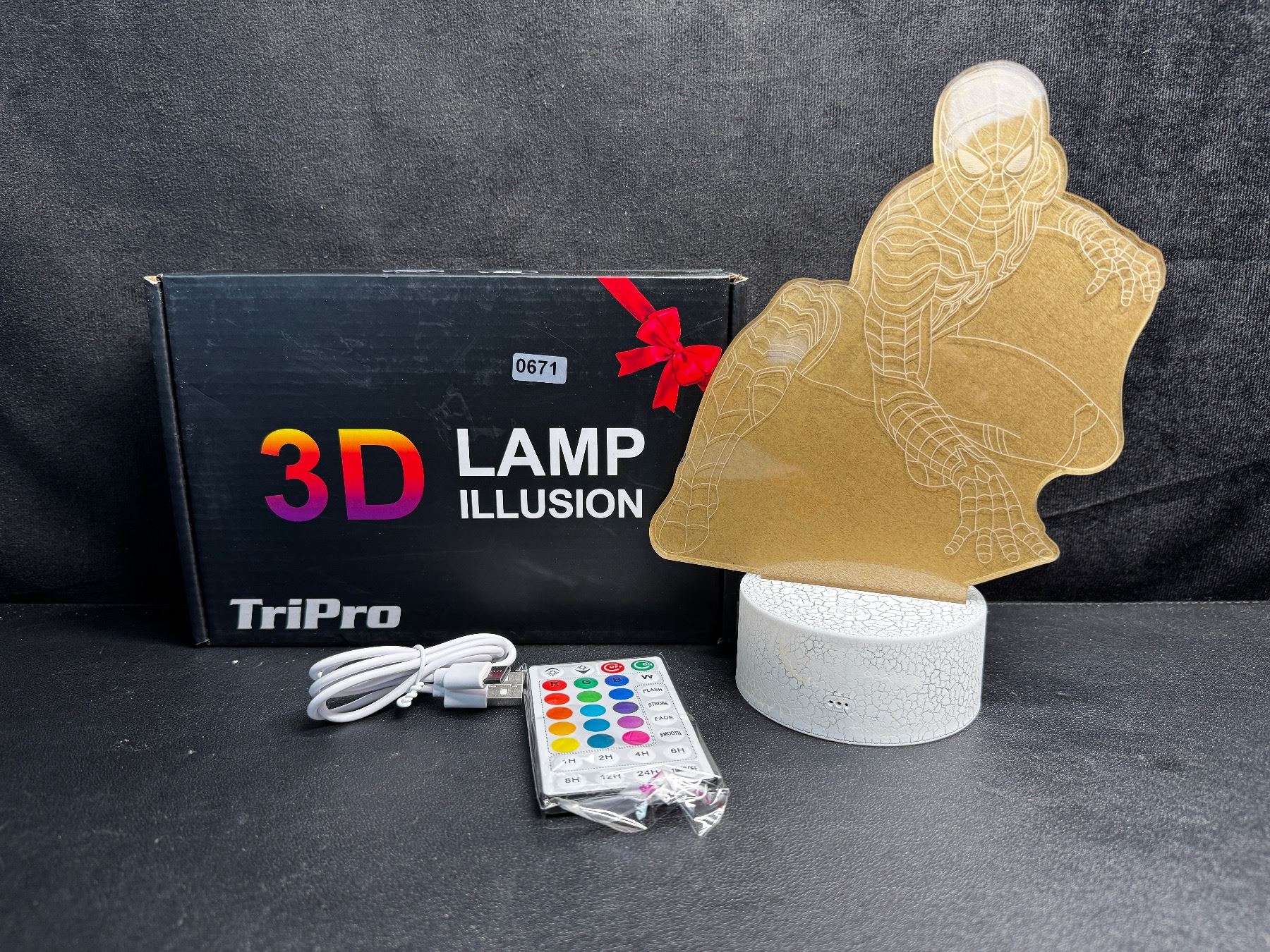 Spiderman 3D Illusion Lamp with Changeable Colours - Includes Base Remote and Display - New